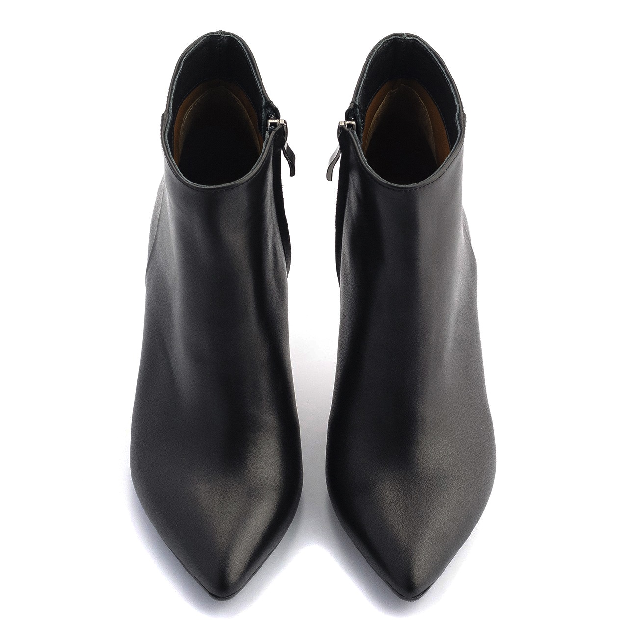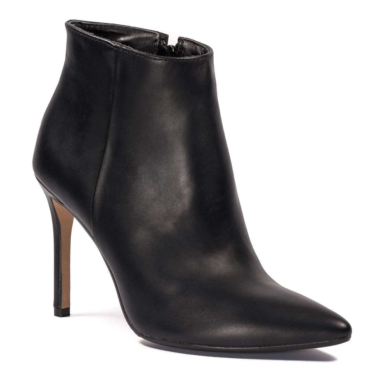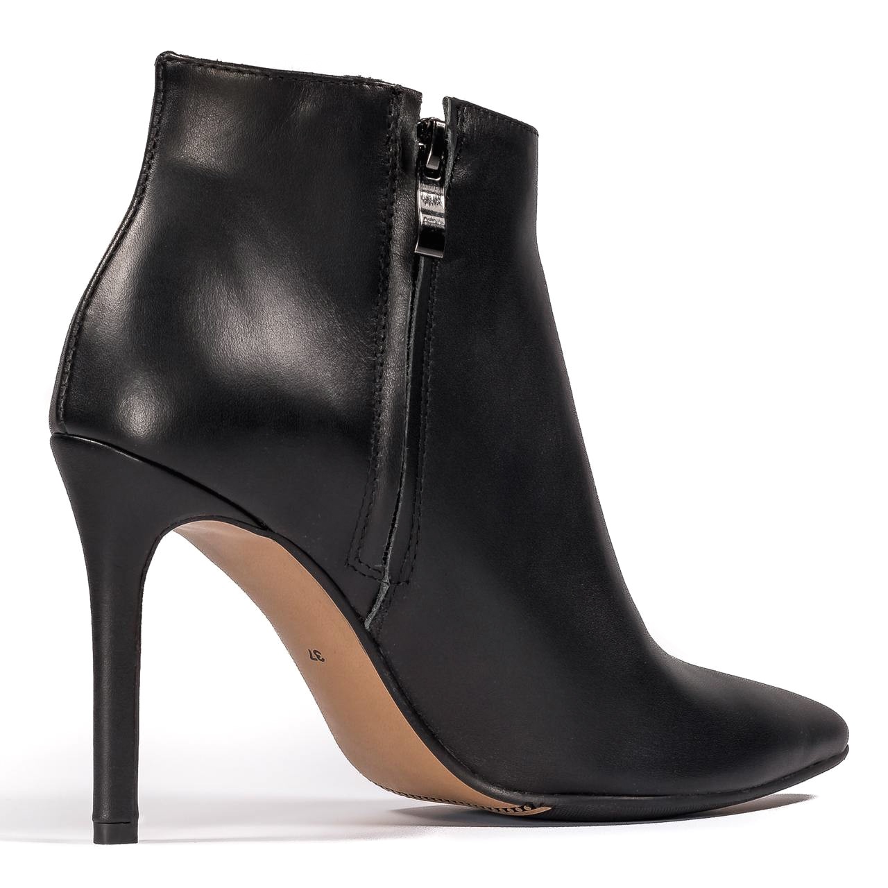 Czarne, klasyczne botki na szpilce wykonane z wysokiej jakości naturalnej skóry licowej. But bardzo wygodny i stabilny pomimo wysokiego obcasa. Wycięcie i krój botka dopasowane są tak aby stopa wyglądała elegancko i zgrabnie. Z krótką kurtką stworzy niepowtarzalną kreacje a z płaszczykiem-pełną wdzięku stylizację. But na każdą okazję, którego nie może zabraknąć w szafie żadnej kobiety.