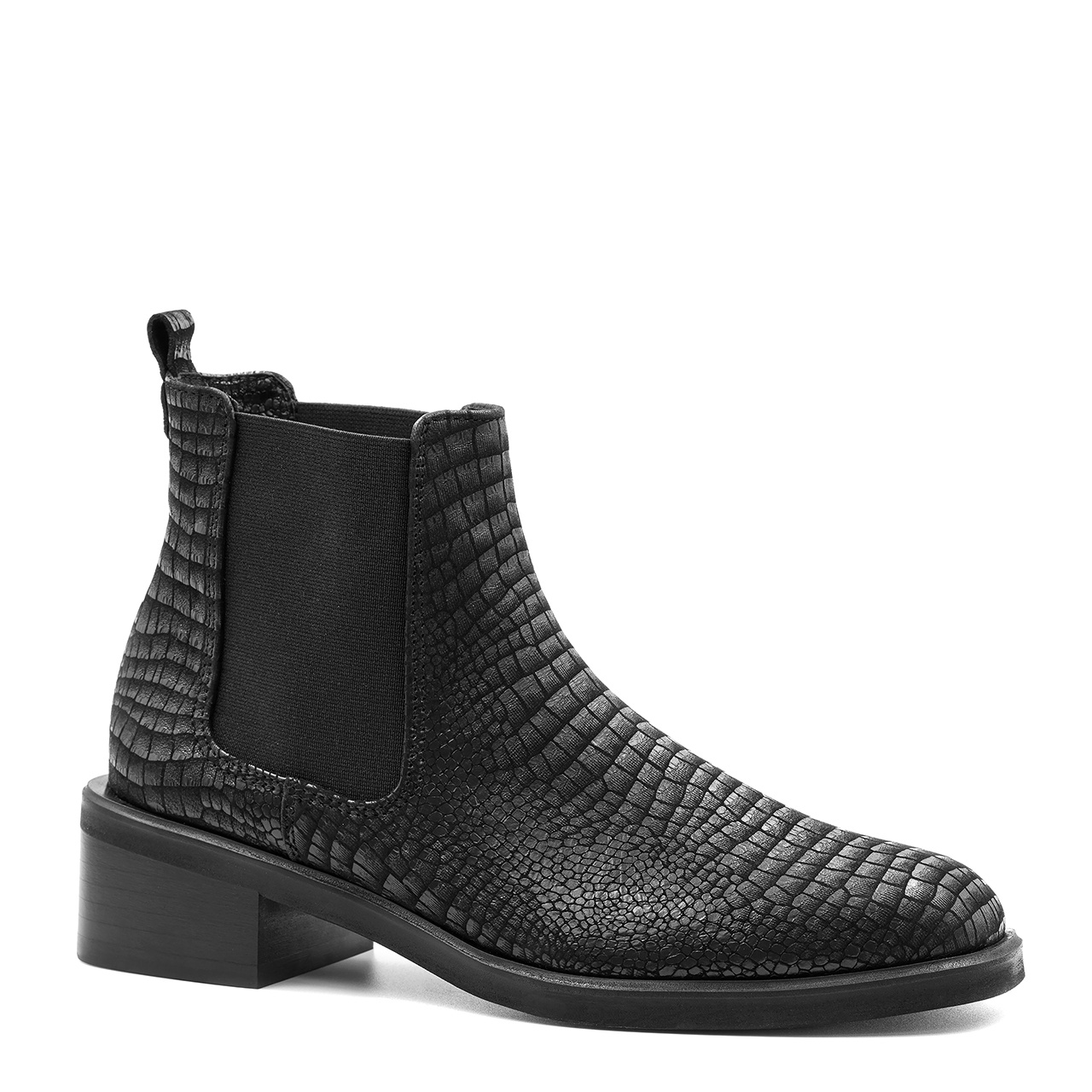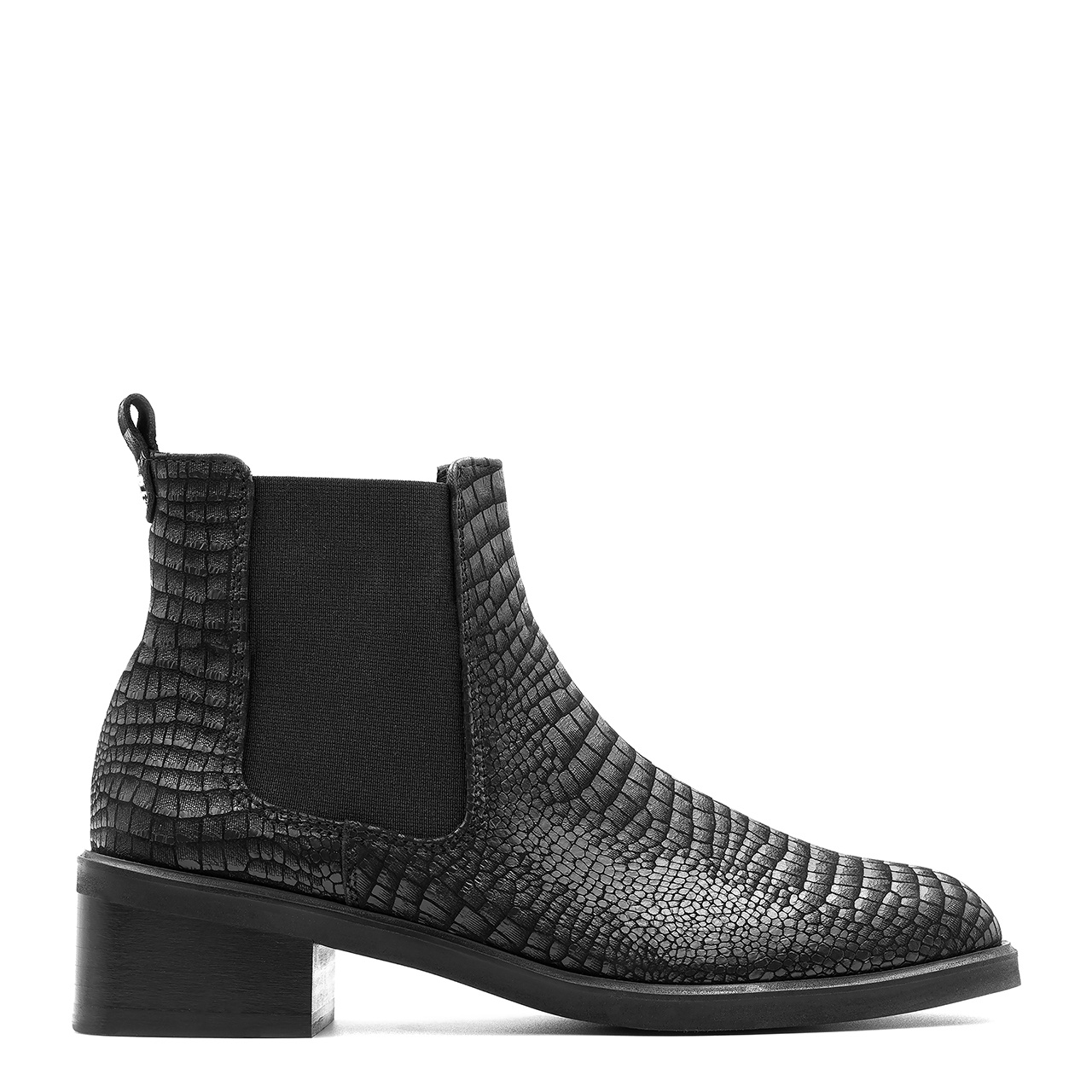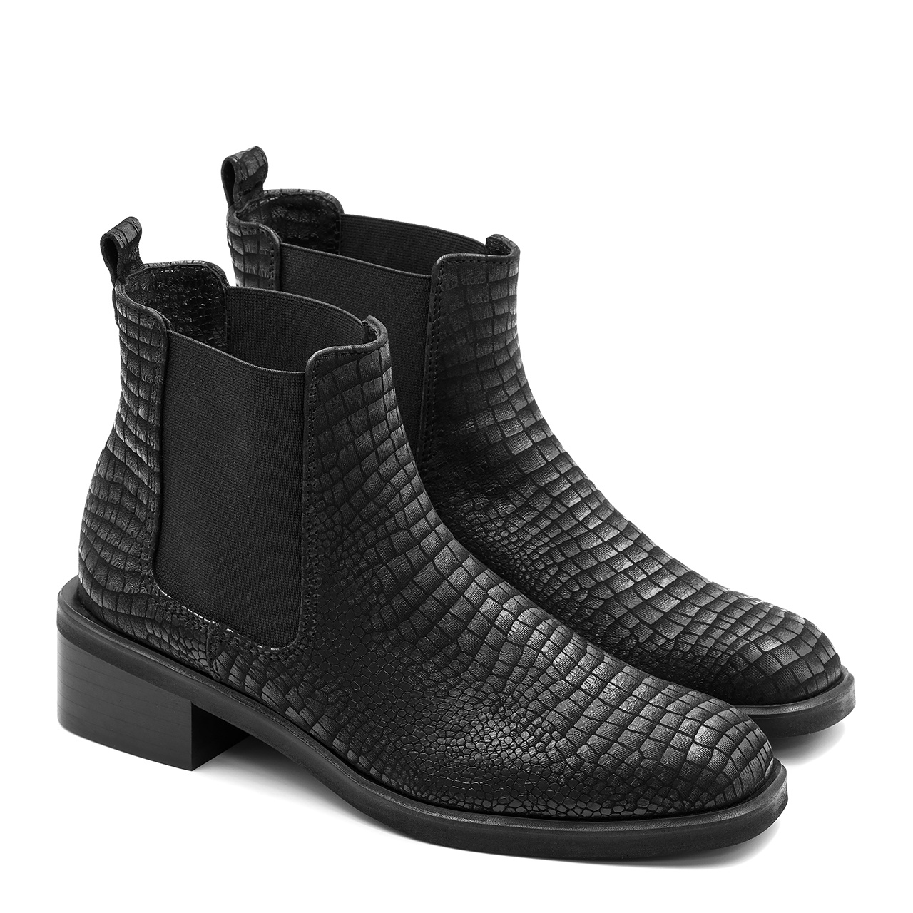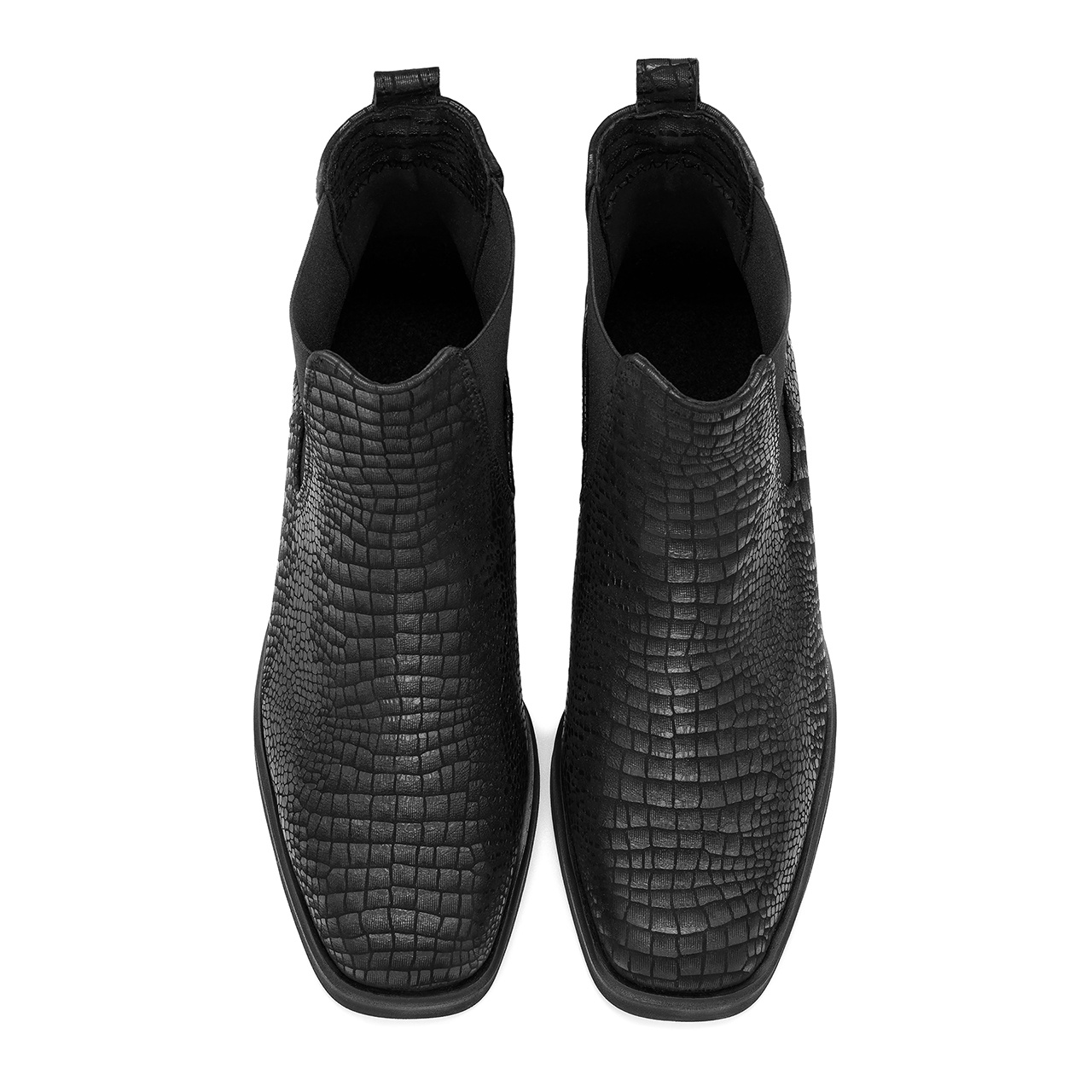 Czarne skórzane botki w krokodyli wzór 255T