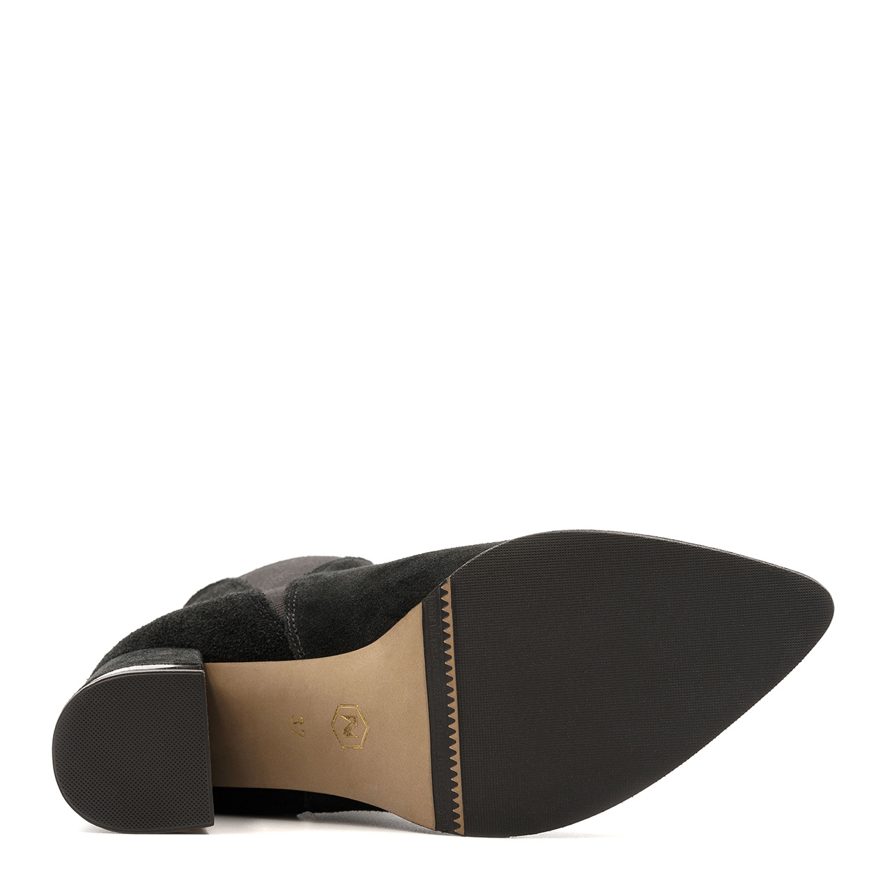 Czarne welurowe botki na bursztynowym obcasie 42S
