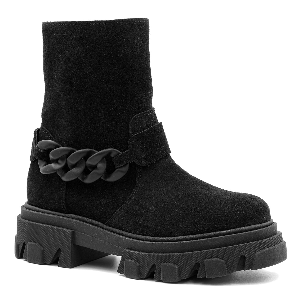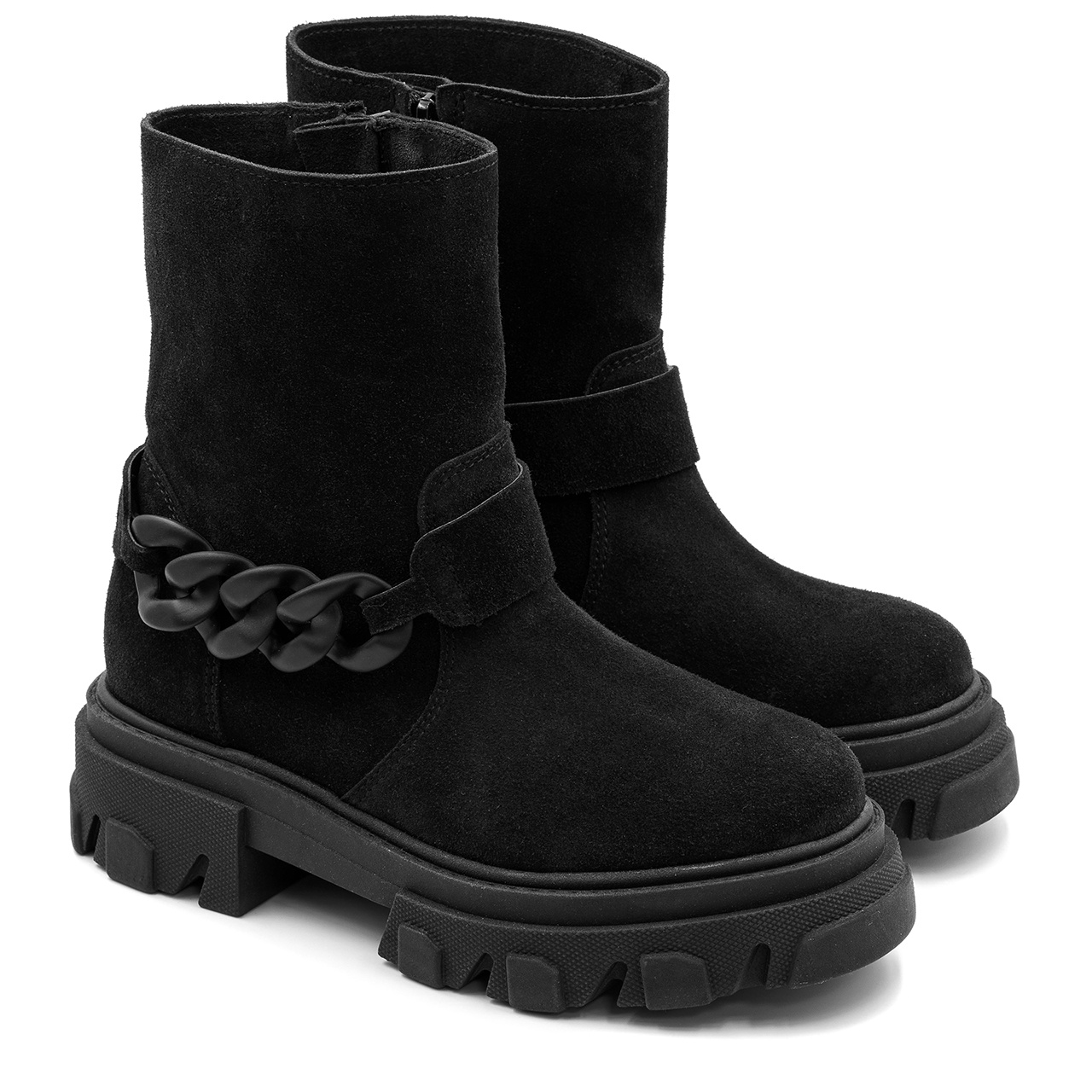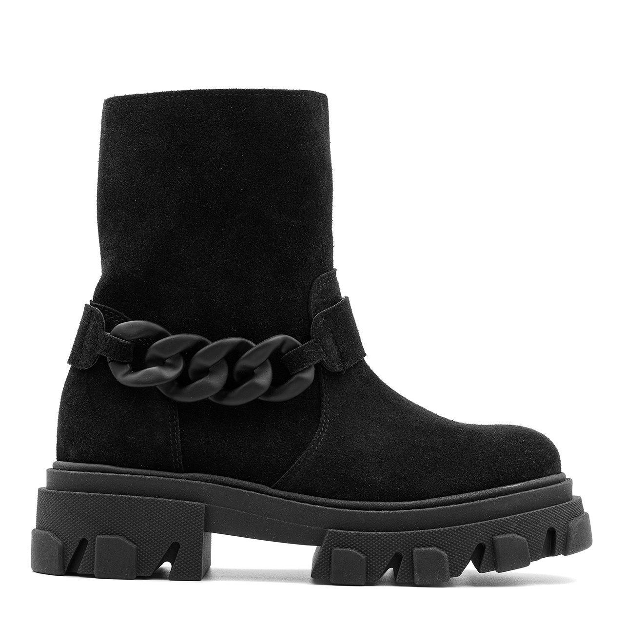 Czarne welurowe botki z czarnym łańcuchem 241D