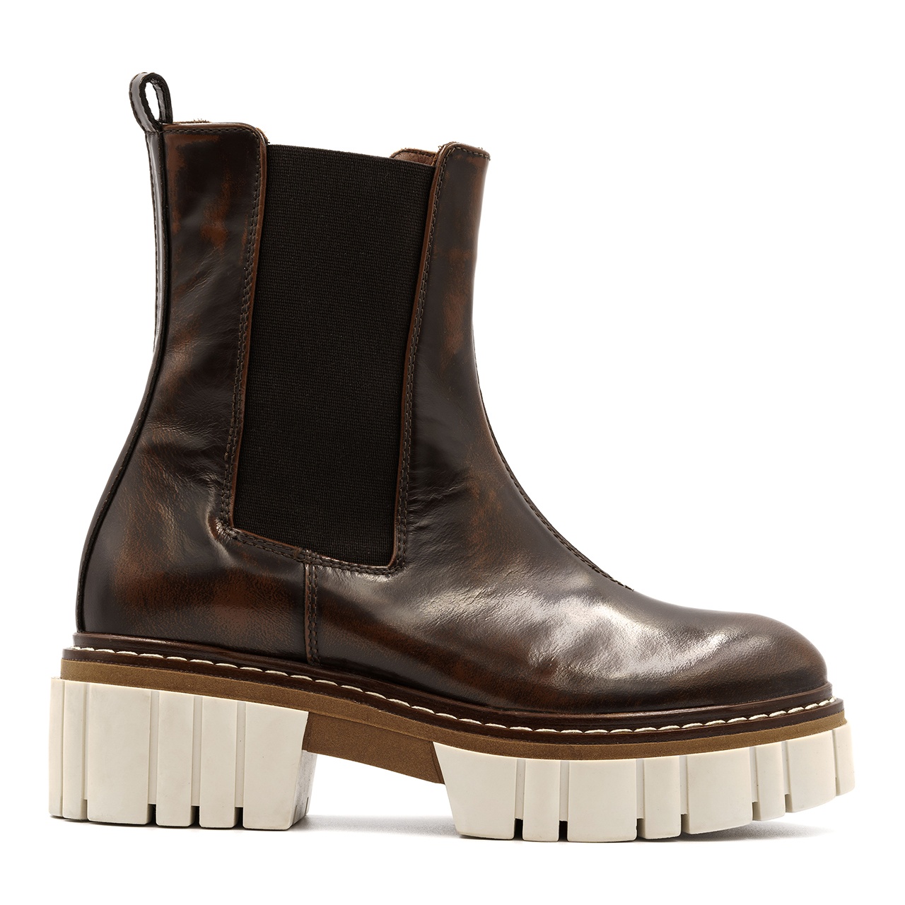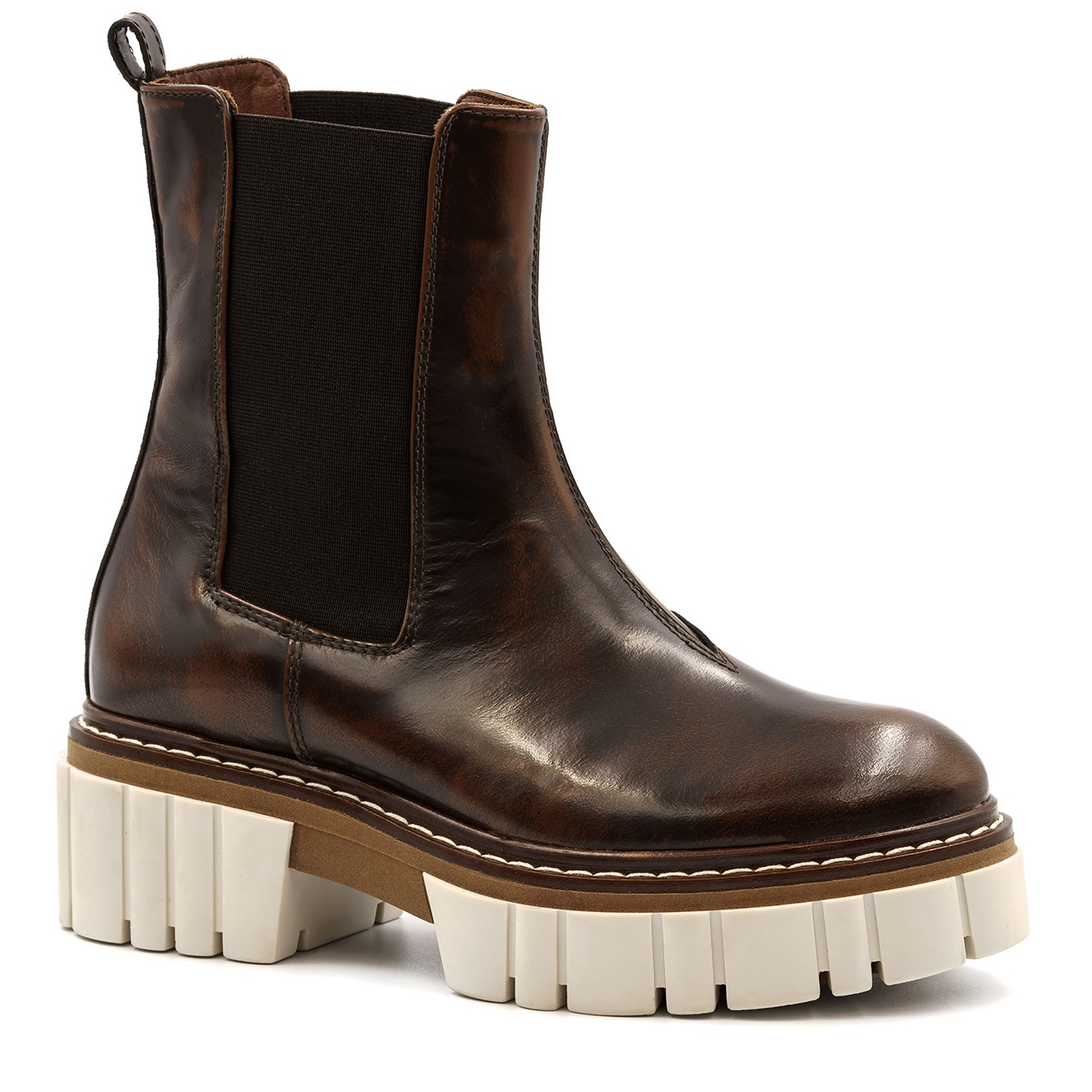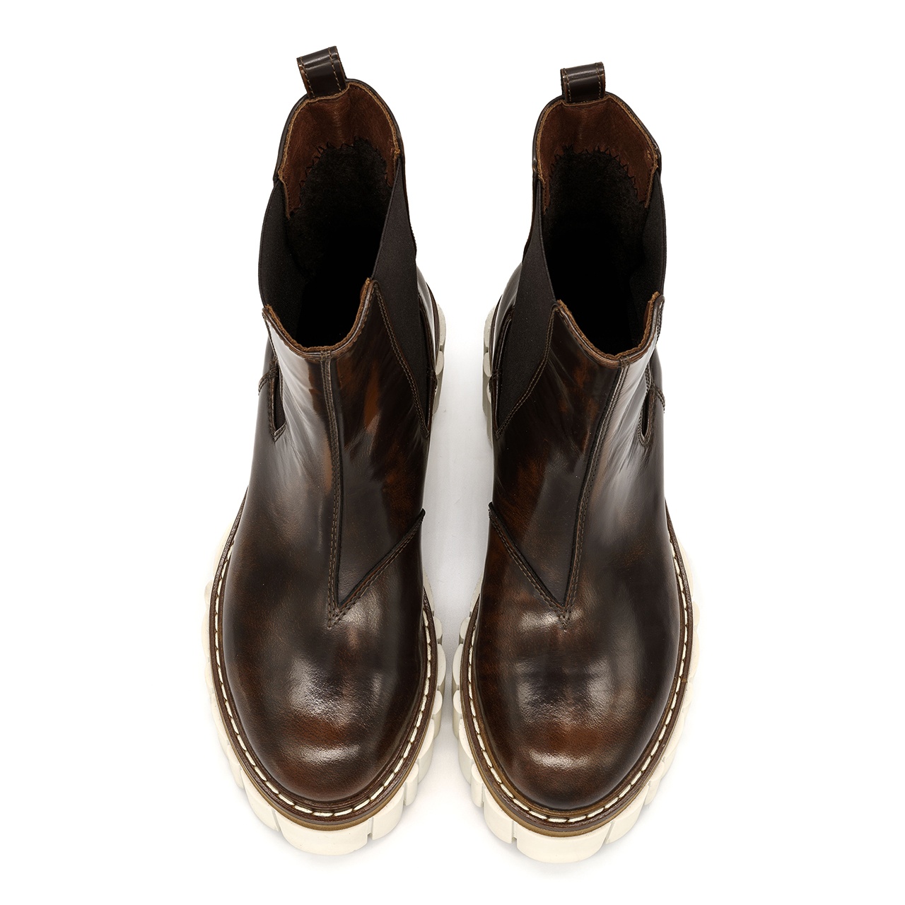 Brązowe cieniowane botki na grubej podeszwie 245S