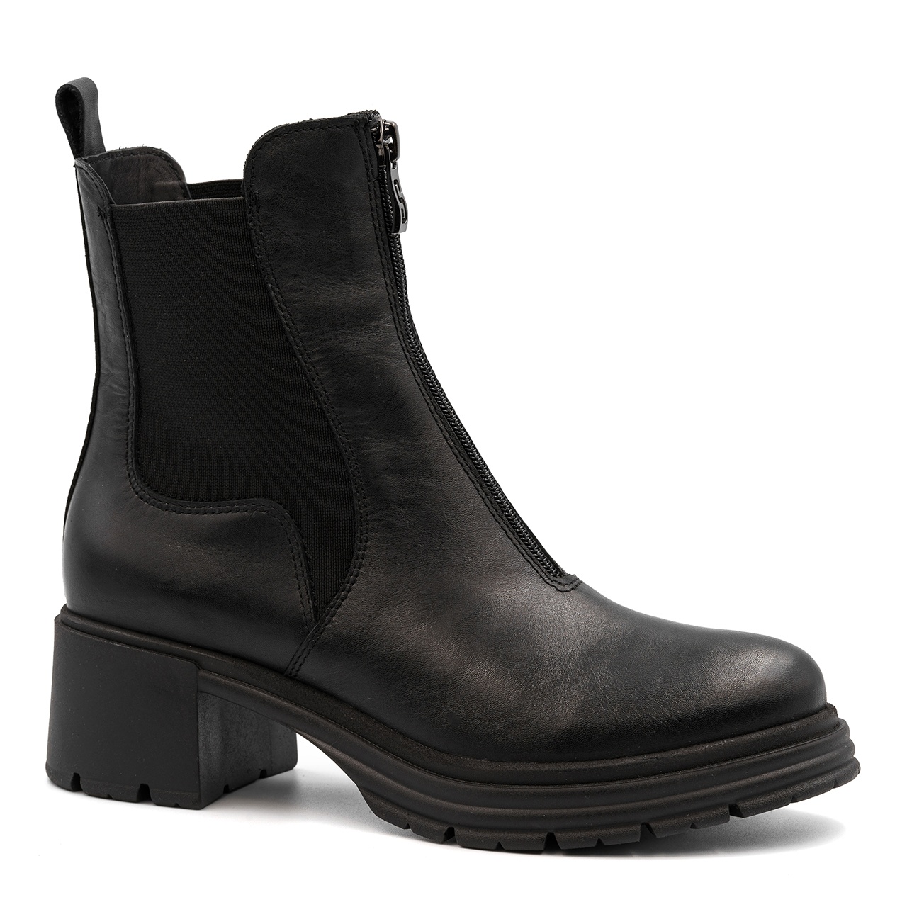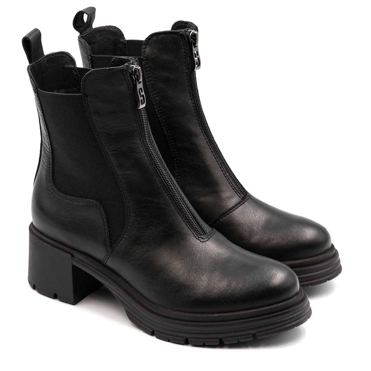 Czarne skórzane botki na grubym spodzie 7SM8010A