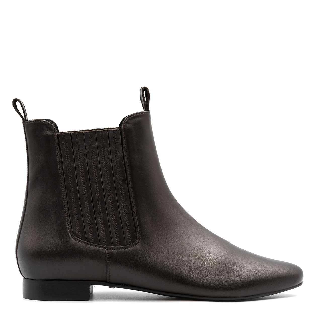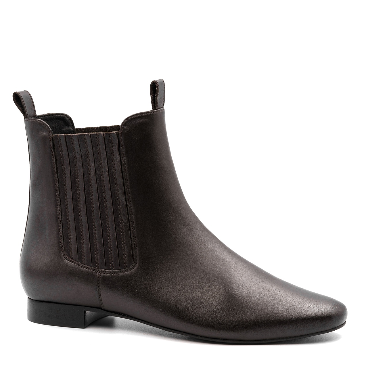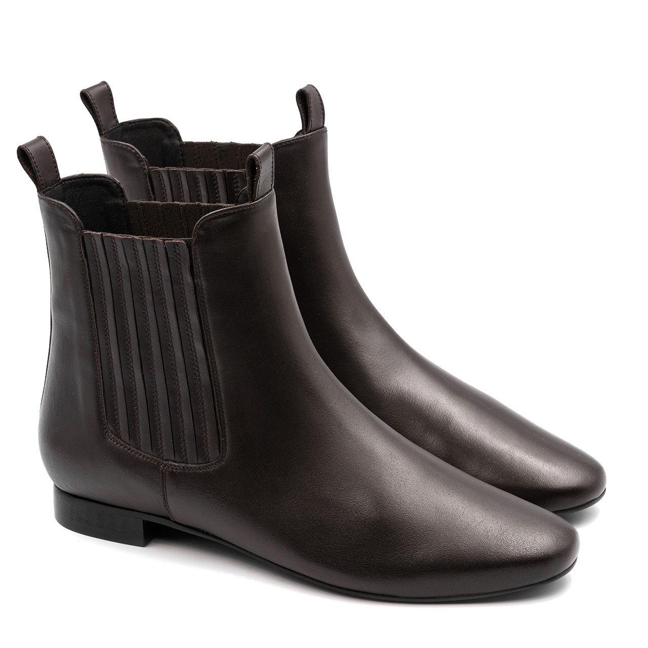 Ciemnobrązowe sztyblety z ozdobną gumą. Buty wyprodukowano z naturalnej skóry licowej. Wkładkę wykonano ze skóry naturalnej. Buty nie posiadają zamka. Orientacyjne wymiary dla rozmiaru 37 to: Szerokość cholewki na górze 26 cm, a jej wysokość mierzona od obcasa wynosi około 16,5 cm. Wymiary podawane na kartach produktów to wymiary orientacyjne i odnoszą się do rozmiaru 37.