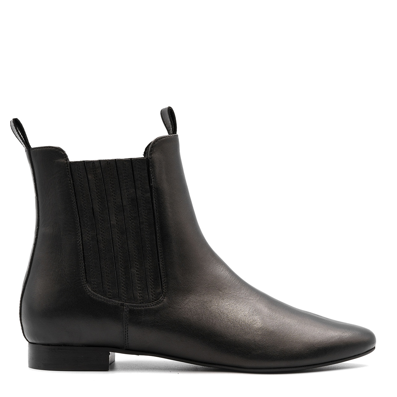 Czarne sztyblety z ozdobną gumą. Buty wyprodukowano z naturalnej skóry licowej. Wkładkę wykonano ze skóry naturalnej. Buty nie posiadają zamka. Orientacyjne wymiary dla rozmiaru 37 to: Szerokość cholewki na górze 26 cm, a jej wysokość mierzona od obcasa wynosi około 16,5 cm. Wymiary podawane na kartach produktów to wymiary orientacyjne i odnoszą się do rozmiaru 37.