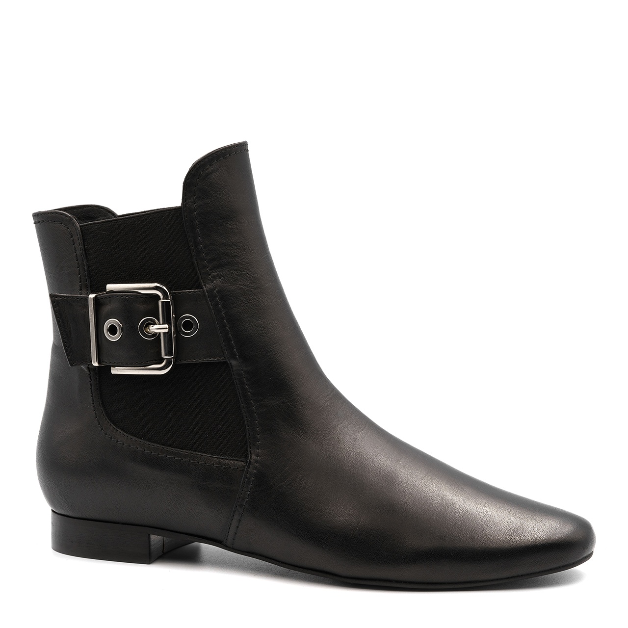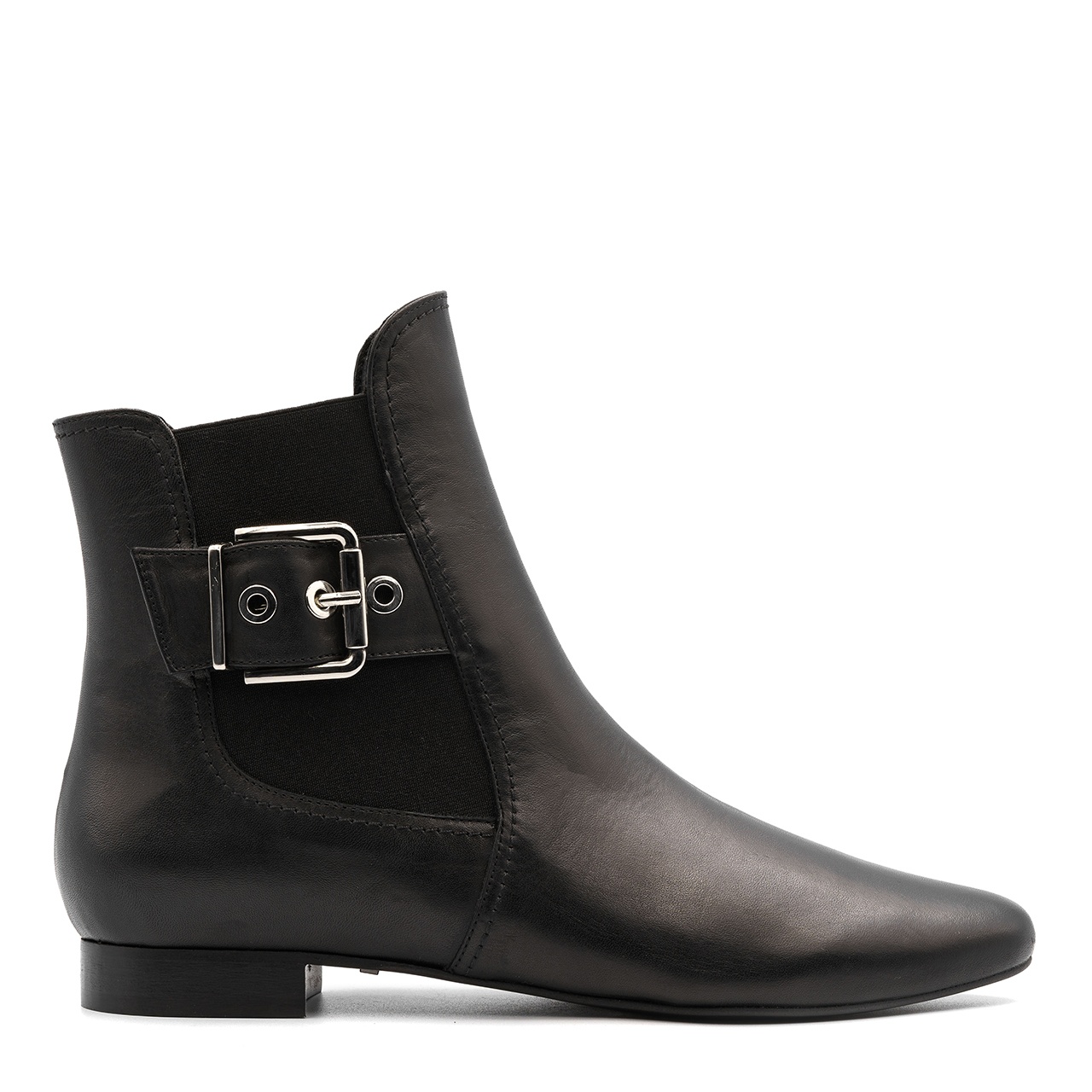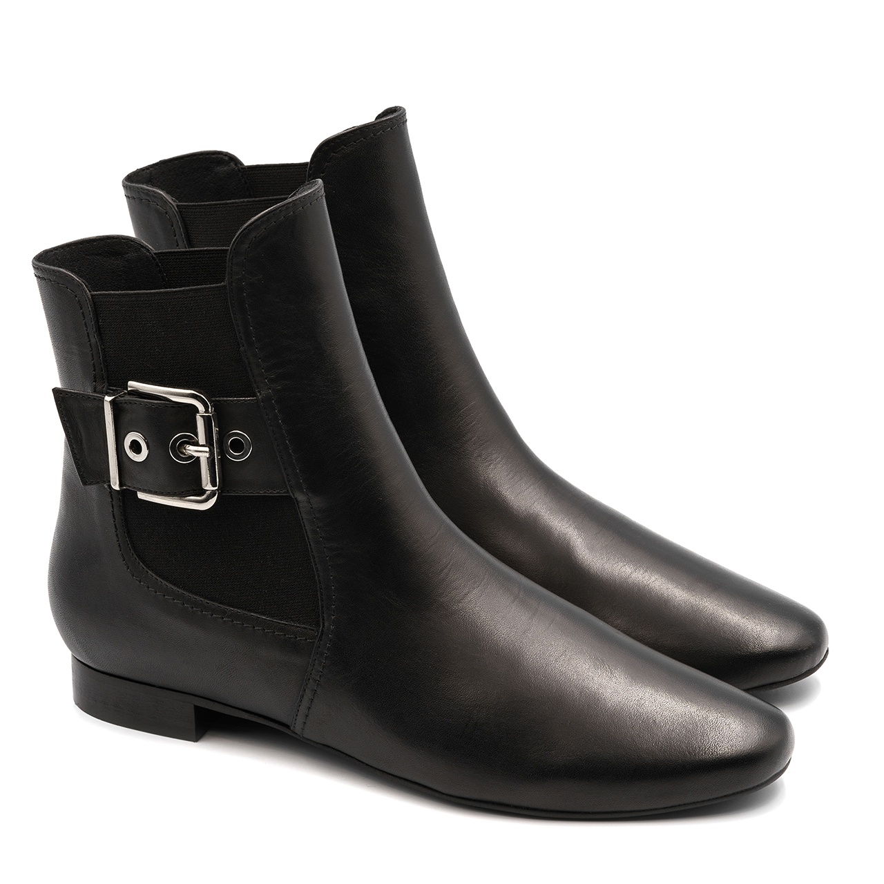 Czarne skórzane botki z klamrą 5AD28915425Z
