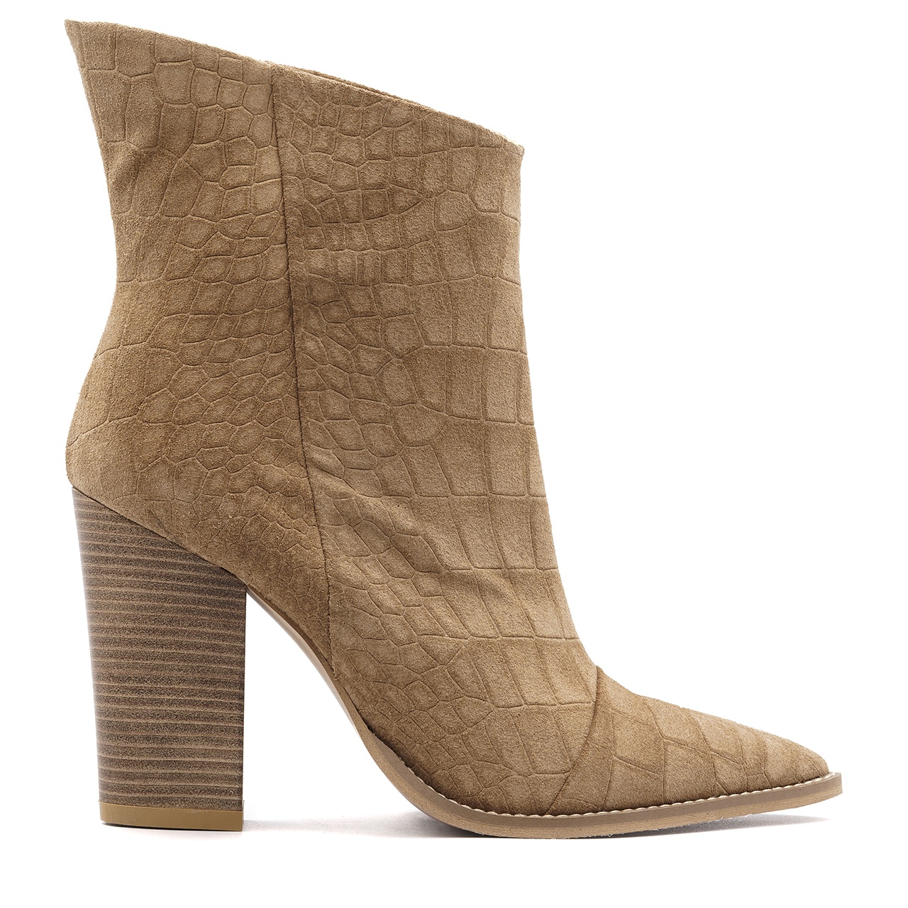 Rude kowbojki na 10 cm wysokim obcasie. Buty wyprodukowano z naturalnej skóry zamszowej z tłoczeniem w zwierzęcy wzór. Wkładkę wykonano ze skóry naturalnej. Buty nie posiadają zamka. Orientacyjne wymiary dla rozmiaru 37 to: Szerokość cholewki na górze 29 cm, a jej wysokość mierzona od obcasa wynosi około 14 cm. Wymiary podawane na kartach produktów to wymiary orientacyjne i odnoszą się do rozmiaru 37.
