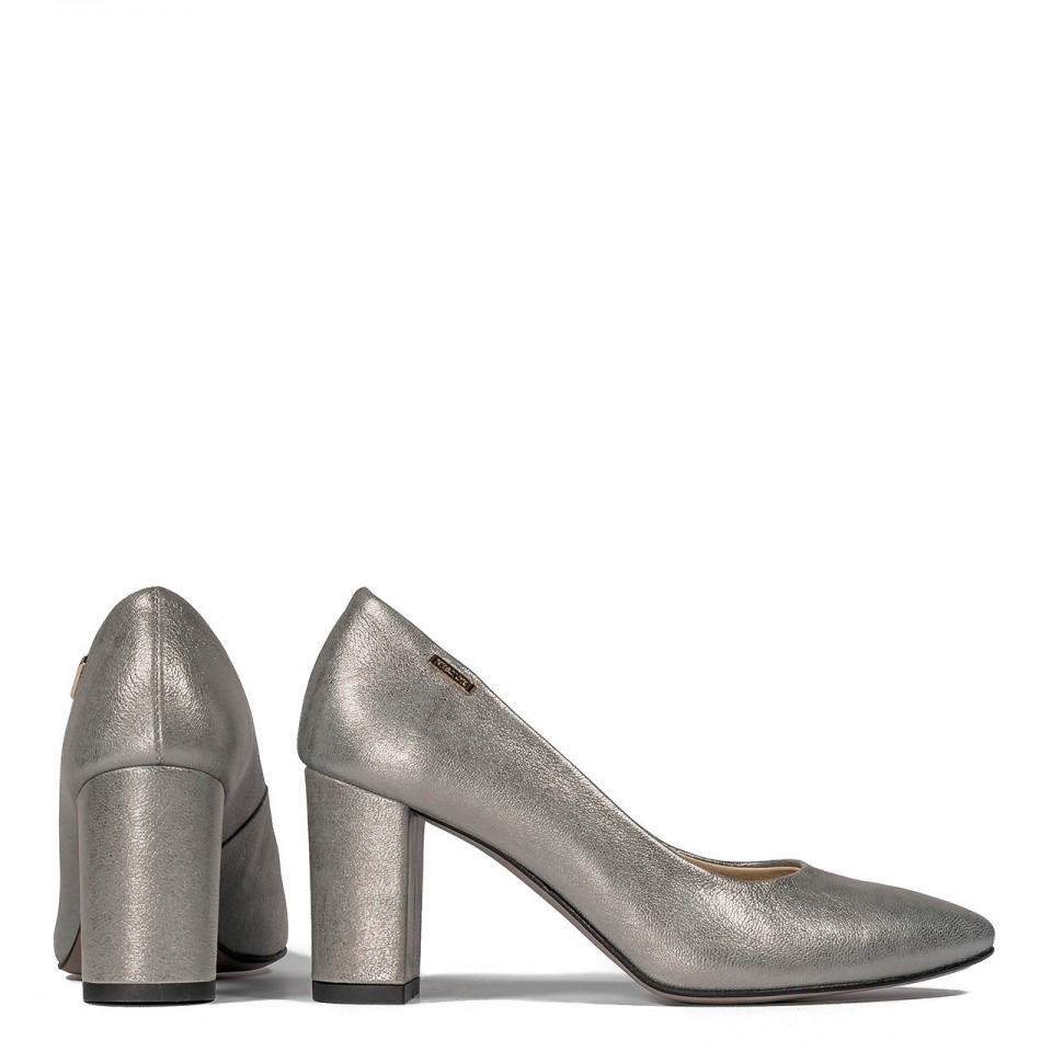 Perłowo-szare czółenka na niskim słupku 78D1