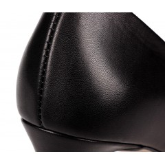 9-centymetrowy obcas jest idealnym dopełnieniem tych butów, nadającym klasy i stylu ich właścicielce. Jest on także stabilny i mocny, dzięki czemu jego złamanie podczas chodzenia czy tańca jest niemożliwe. Te czarne buty to idealne dopełnienie każdej stylizacji, dodającym jej uroku oraz eleganckiego wyglądu. Są niezastąpionym elementem garderoby każdej kobiety, która chce wyglądać modnie i kobieco nawet w pracy. Dzięki naturalnej skórze doskonale zdają egzamin nawet w deszczowe dni, a ich pielęgnacja jest szybka i łatwa. Do każdych butów dodawane są zapasowe fleki.