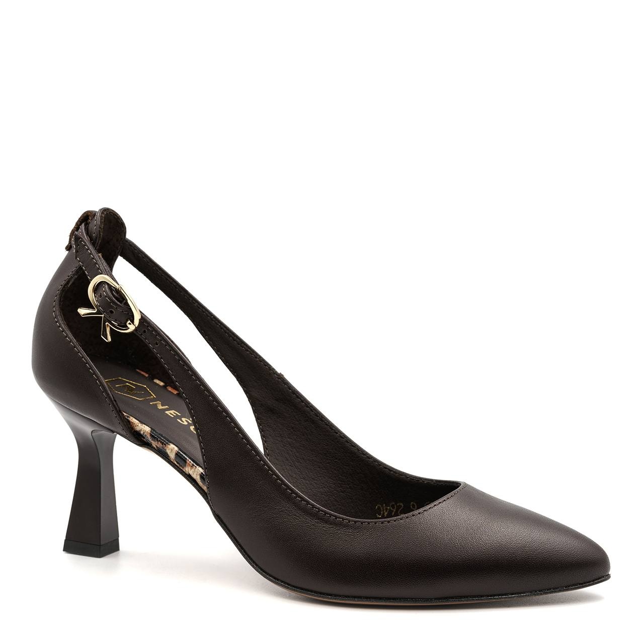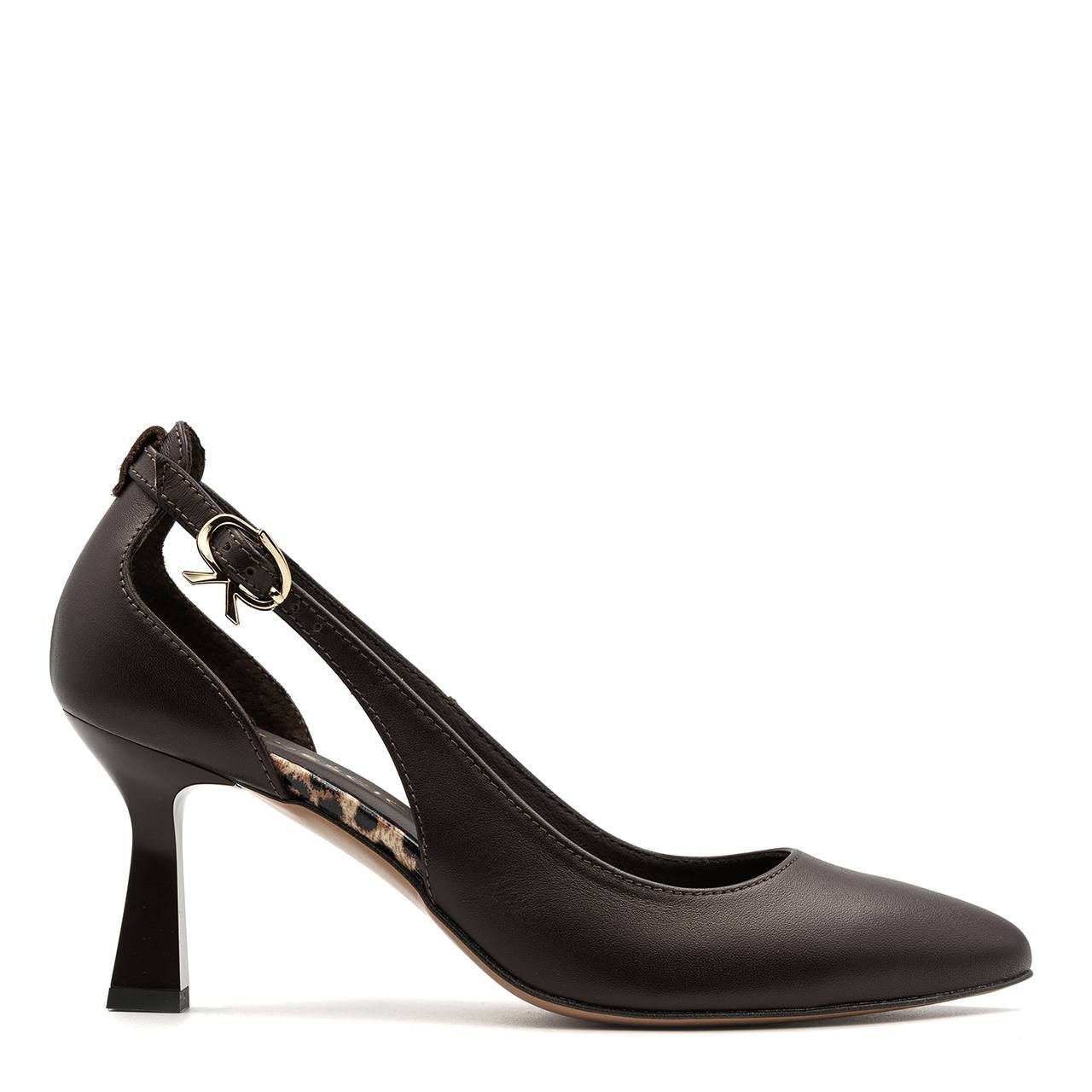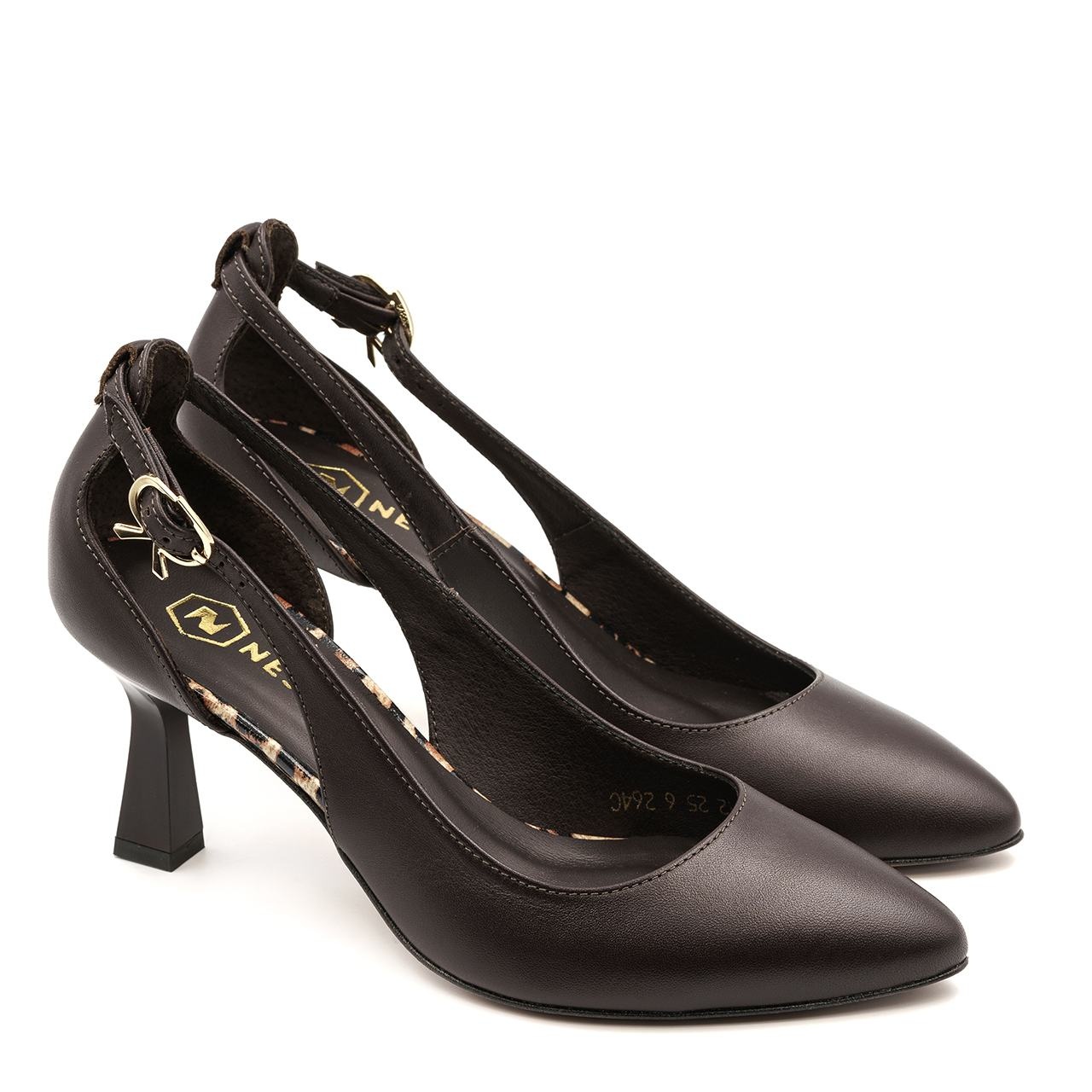 Czekoladowe skórzane czółenka z wycięciem 264C