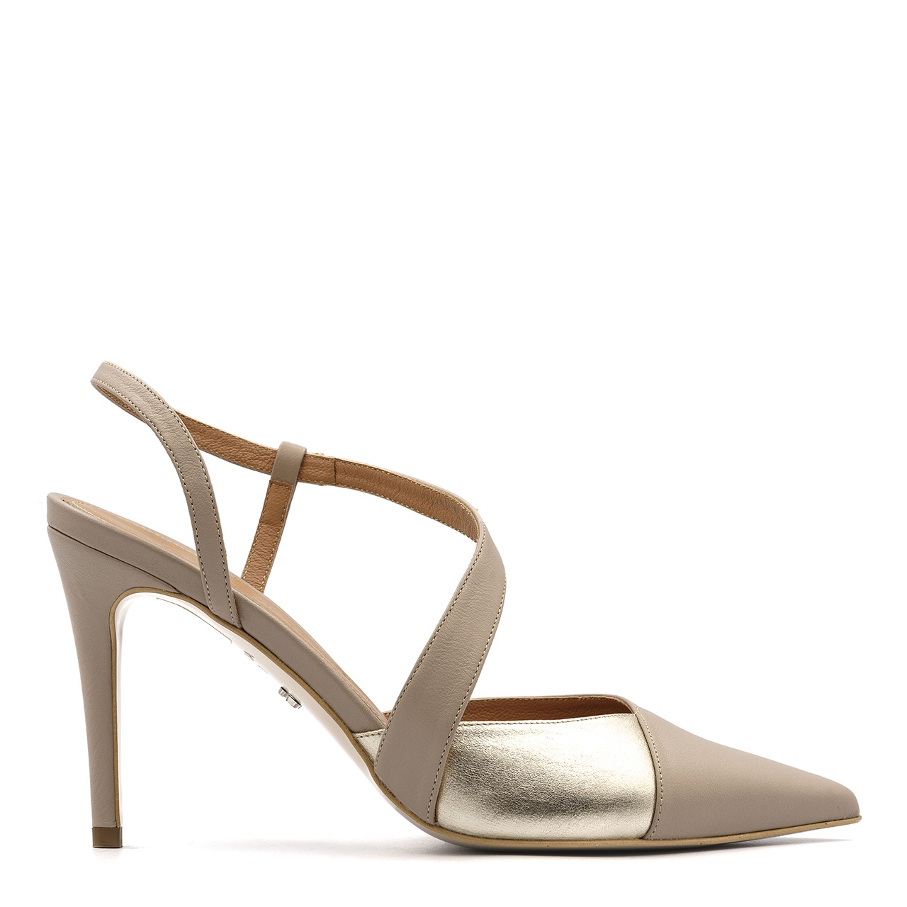 Beżowe skórzane otwarte czółenka 5AD00165920L