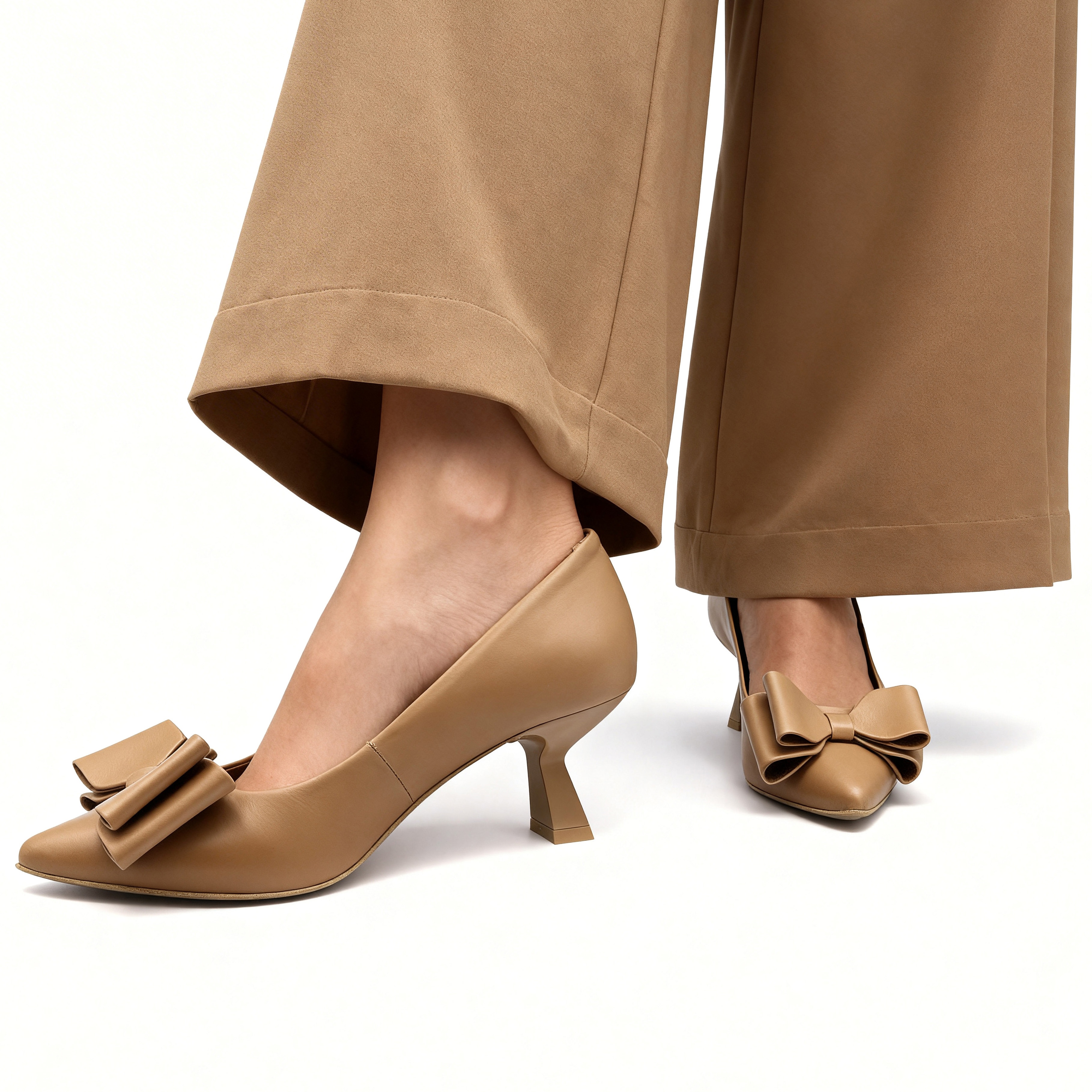 Karmelowe, piękne klasyczne czółenka na 6 cm obcasie typu kaczuszka. Obuwie wyprodukowano ze skóry licowej. Przód buta w szpic. Wkładka wykonana jest ze skóry naturalnej. Czółenka sprawdzą się na każdą okazję. Wymiary podawane na kartach produktów to wymiary orientacyjne i odnoszą się do rozmiaru 37.