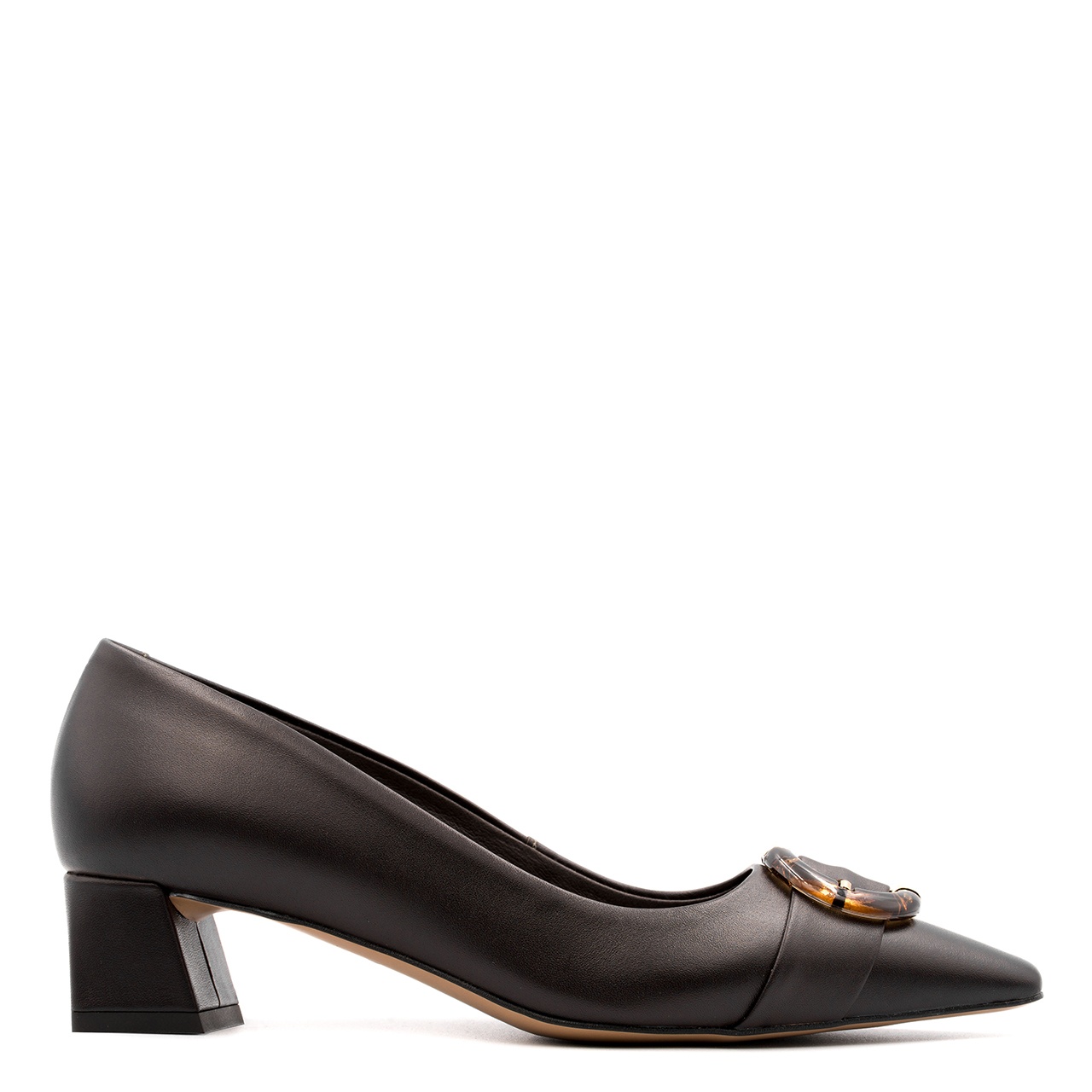 Czekoladowe klasyczne czółenka z noskiem w kwadrat to idealny wybór dla Pań ceniących sobie wygodę i ponadczasowy styl. Czółenka wykonano ze skóry licowej. Główną rolę gra pasek z bursztynową ozdobą. Obcas wynosi około 4 cm. Wkładka w butach jest wykonana ze skóry. Czółenka posiadają podeszwę z tuniskóru z topem antypoślizgowym. Tęgość butów standardowa. Wymiary podawane na kartach produktów to wymiary orientacyjne i odnoszą się do rozmiaru 37.