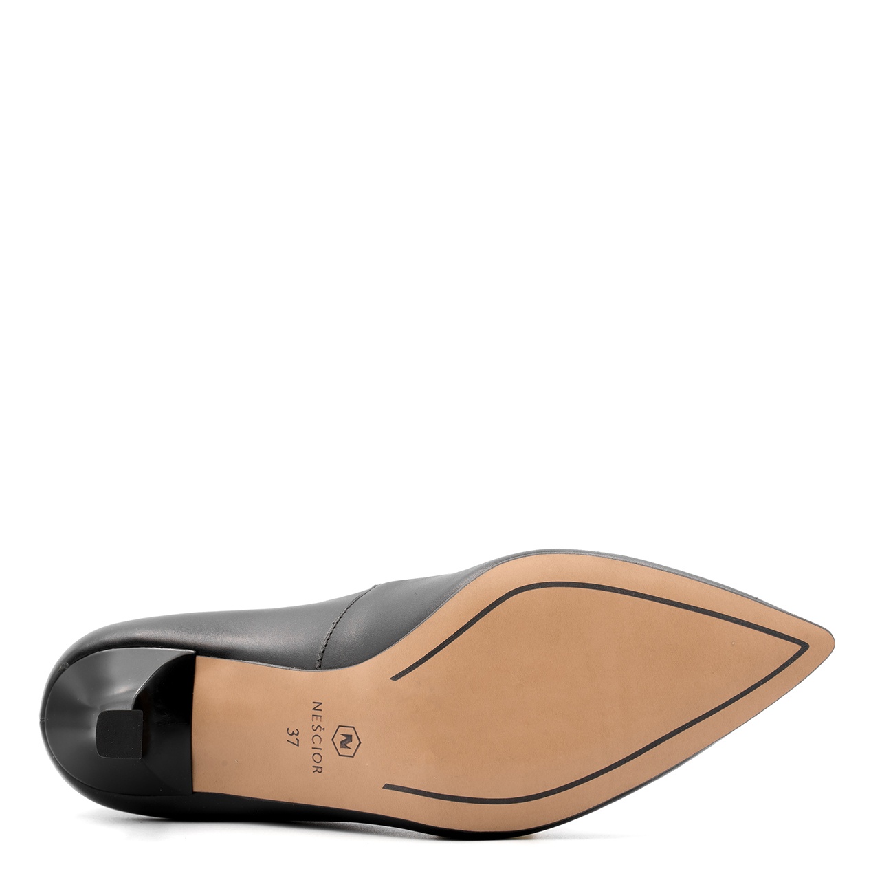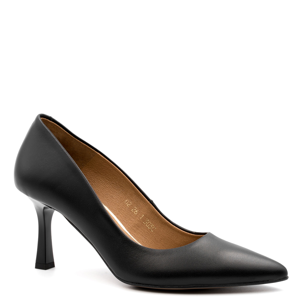 Czarne skórzane czółenka na 8 cm obcasie. Obuwie wykonano ze skóry naturalnej licowej. Nosek butów w szpic. Wkładka w butach jest skórzana. Niezwykle wygodne buty do codziennego użytkowania, a także na specjalne okazje. Tęgość butów standardowa. Wymiary podawane na kartach produktów to wymiary orientacyjne i odnoszą się do rozmiaru 37.