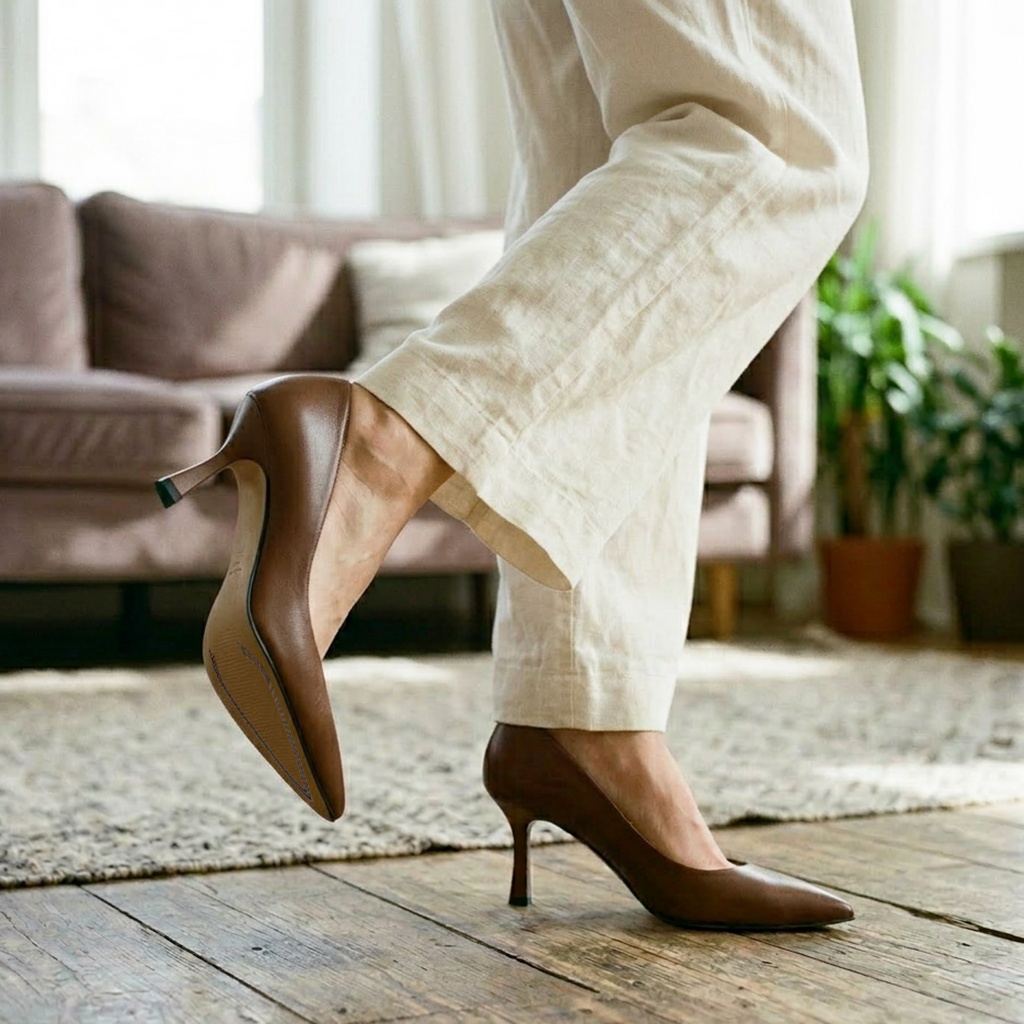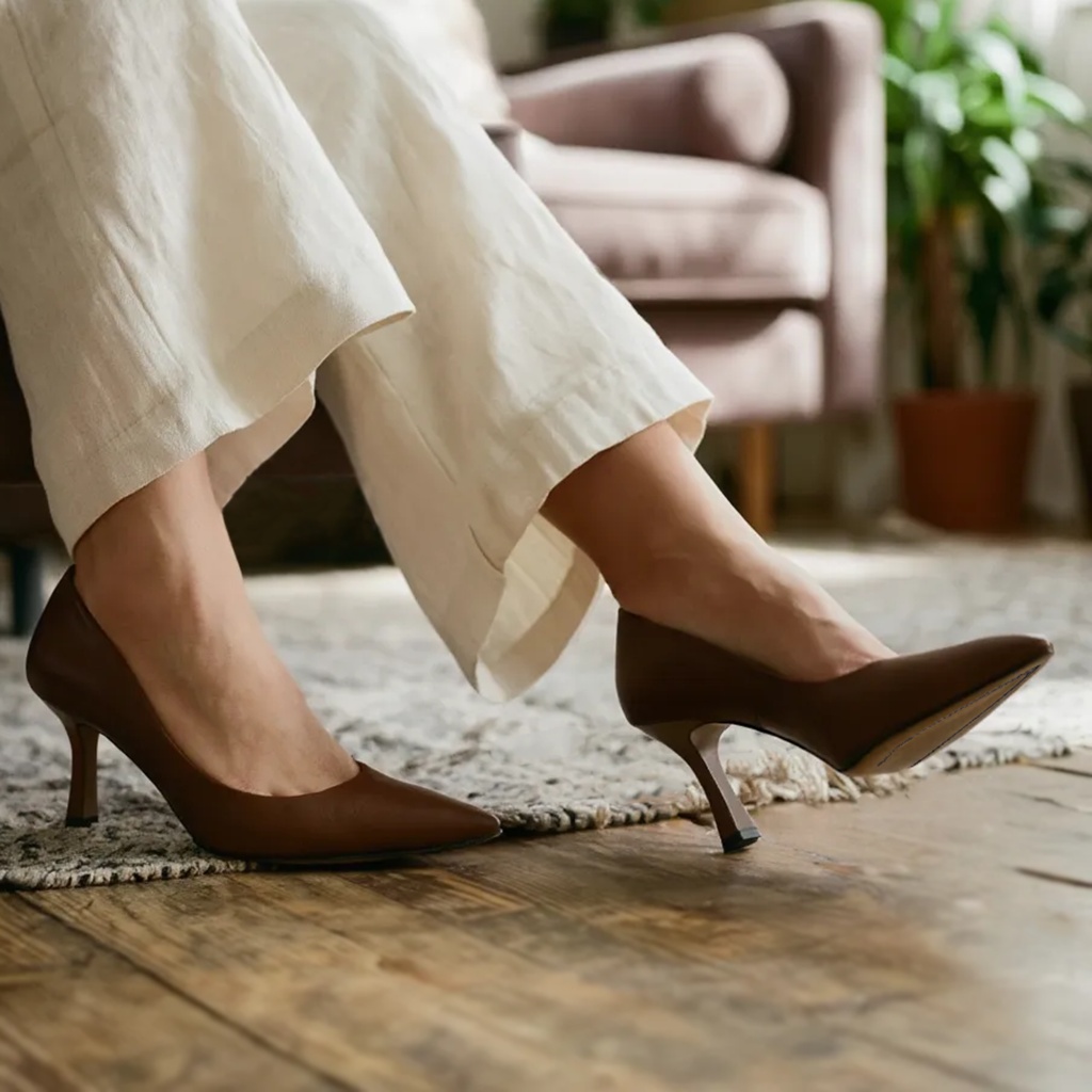 Brązowe skórzane czółenka na 8 cm obcasie. Obuwie wykonano ze skóry naturalnej licowej. Nosek butów w szpic. Wkładka w butach jest skórzana. Niezwykle wygodne buty do codziennego użytkowania, a także na specjalne okazje. Tęgość butów standardowa. Wymiary podawane na kartach produktów to wymiary orientacyjne i odnoszą się do rozmiaru 37.