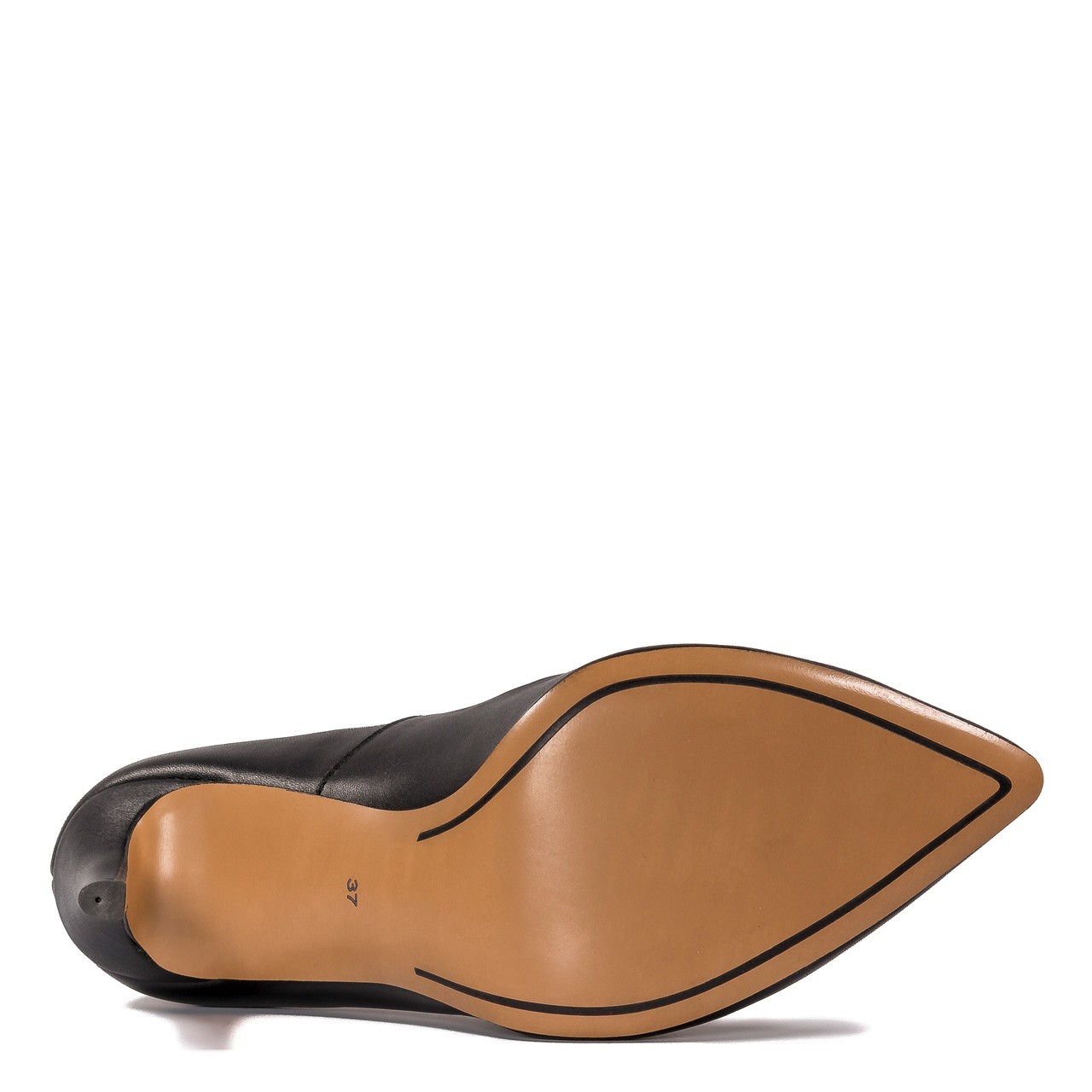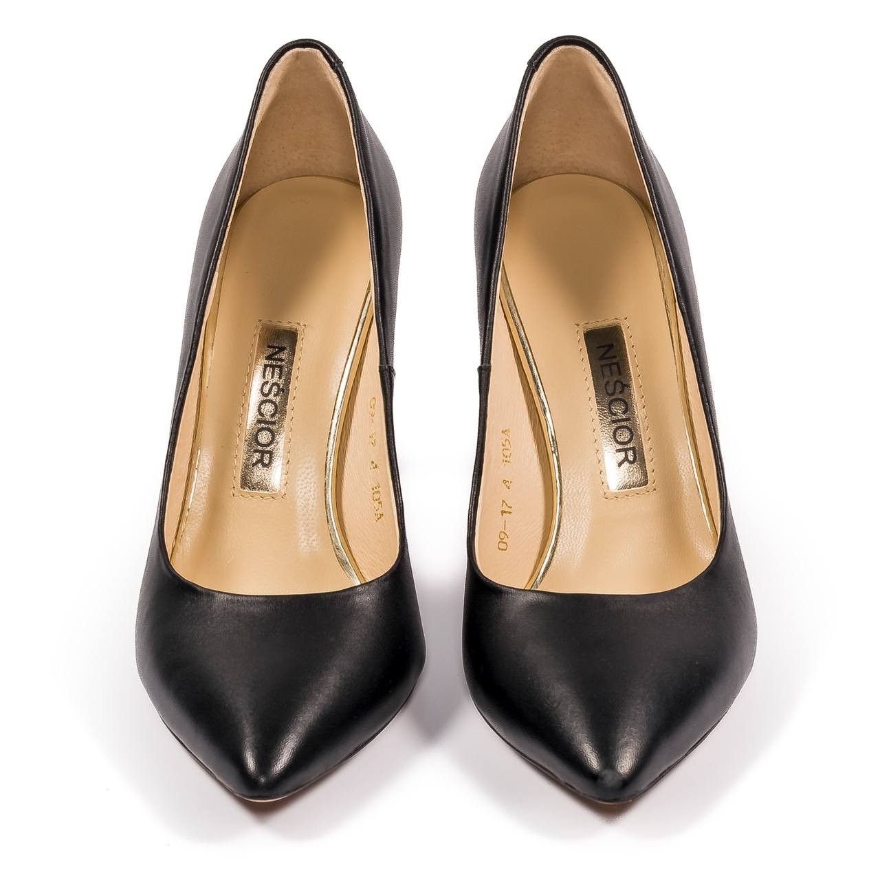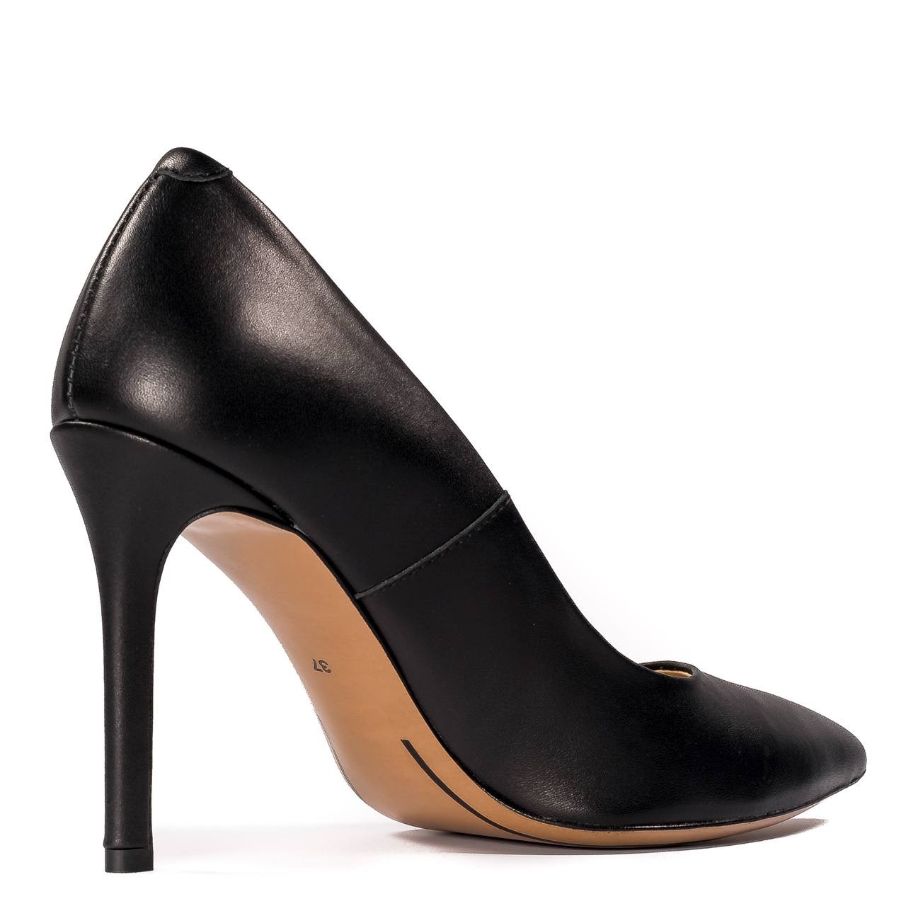 Czarne skórzane szpilki na wysokim obcasie, które wyglądają zawsze efektownie. Obcas w szpilkach wynosi 9,5 cm. Obuwie jest wykonane ze skóry naturalnej licowej. Noski butów w szpic. Wkładka wykonana ze skóry naturalnej. Wymiary podawane na kartach produktów to wymiary orientacyjne i odnoszą się do rozmiaru 37.