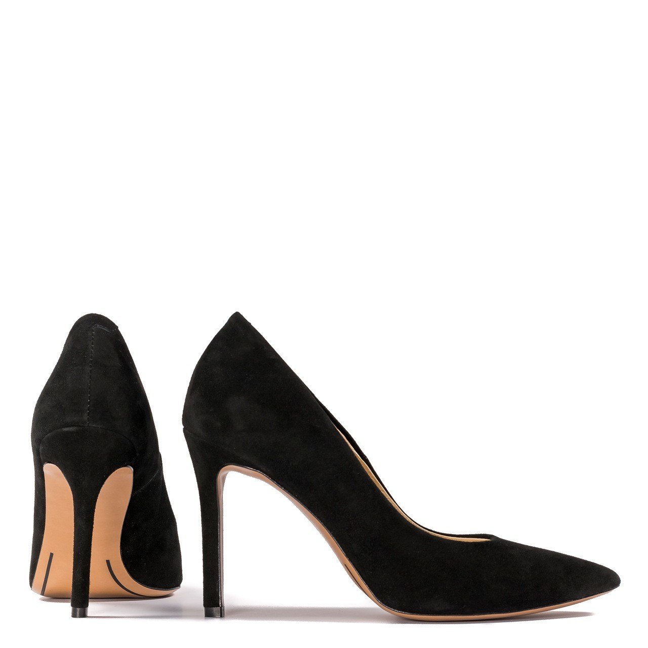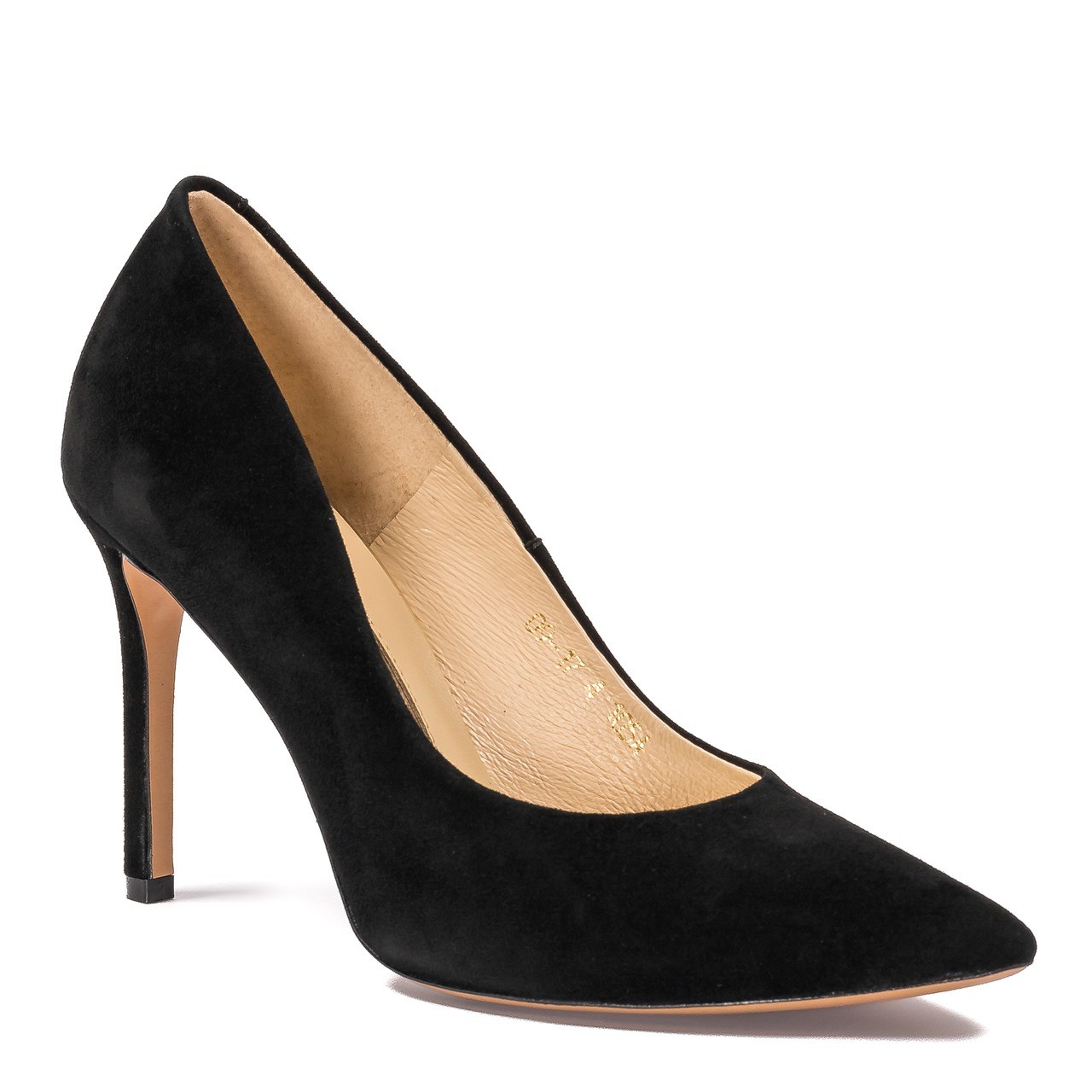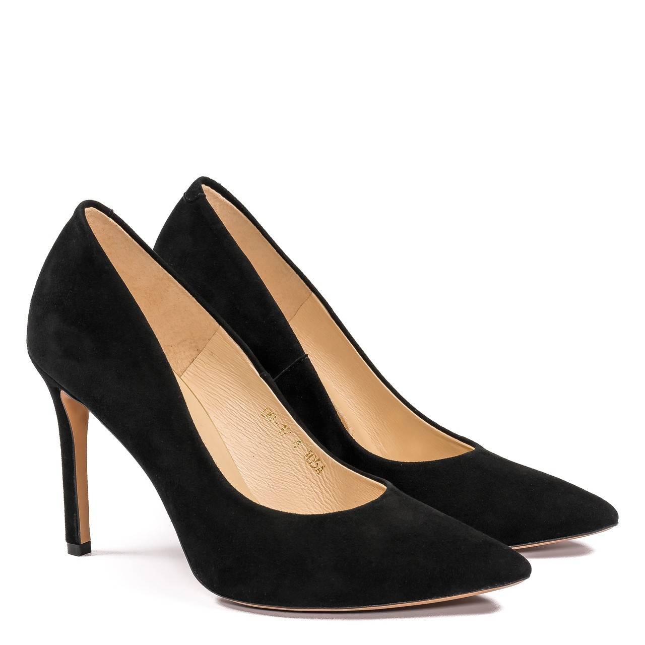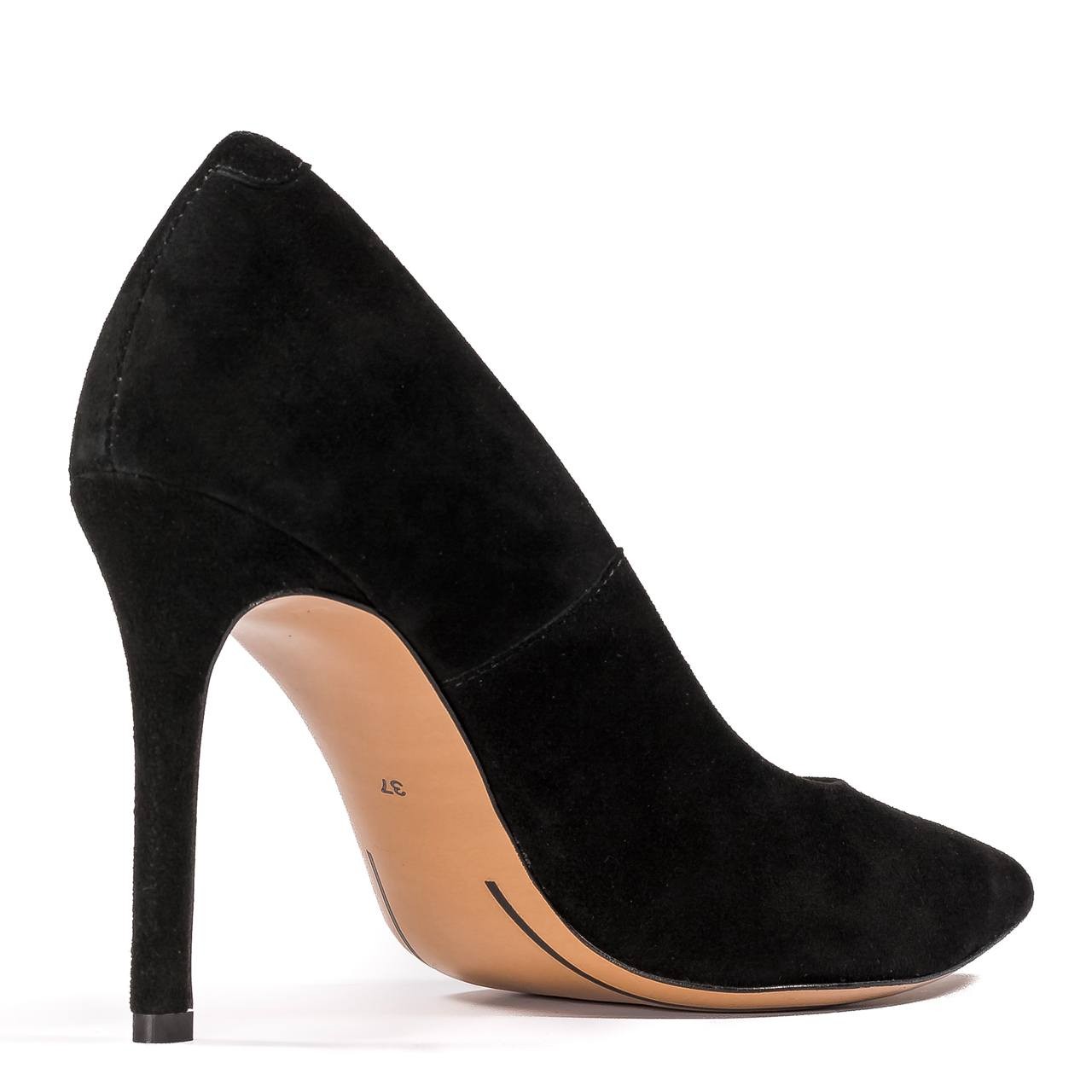 Czarne zamszowe skórzane szpilki, które wyglądają zawsze efektownie. Obcas w szpilkach wynosi 9,5 cm. Obuwie jest wykonane ze skóry naturalnej zamszowej. Noski butów w szpic. Wkładka wykonana ze skóry naturalnej. Wymiary podawane na kartach produktów to wymiary orientacyjne i odnoszą się do rozmiaru 37.