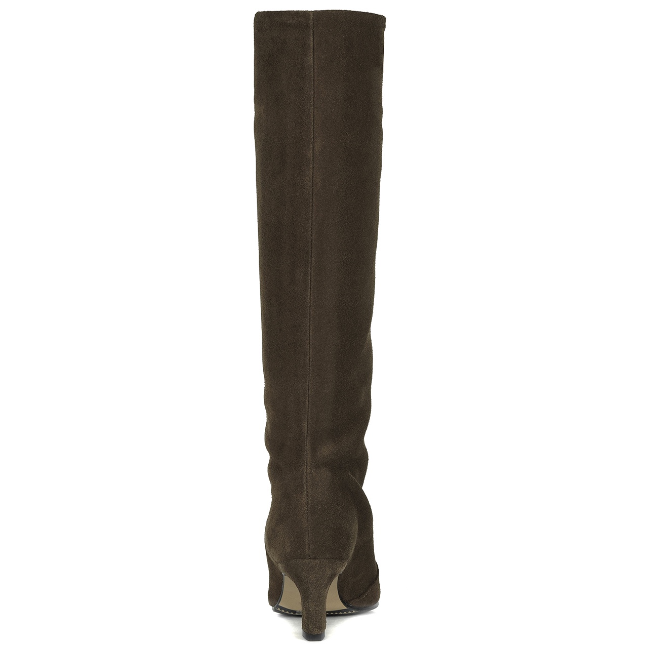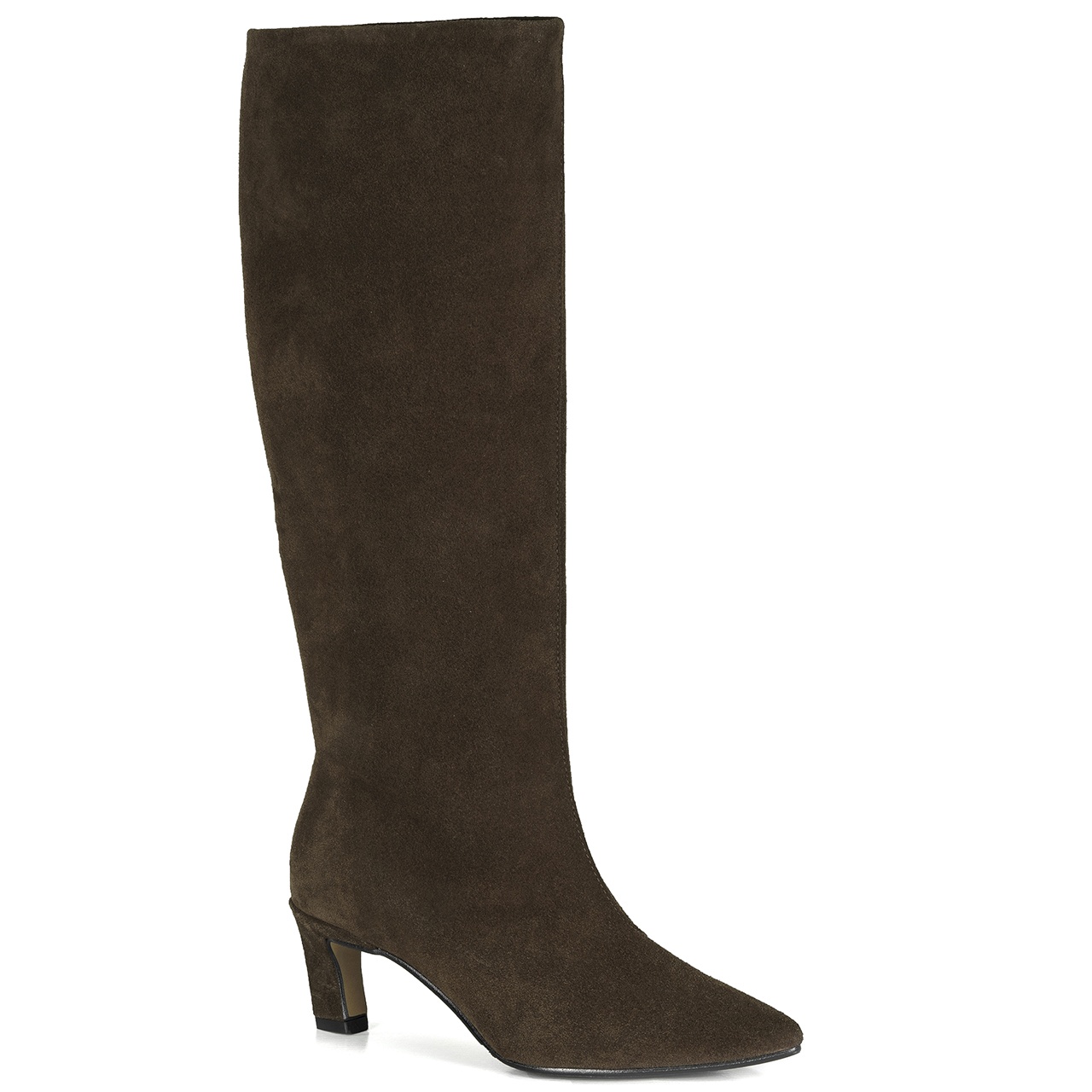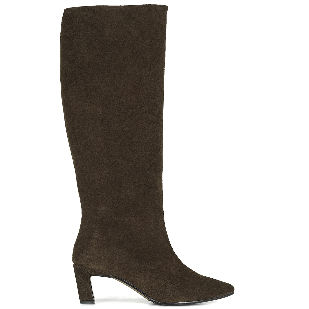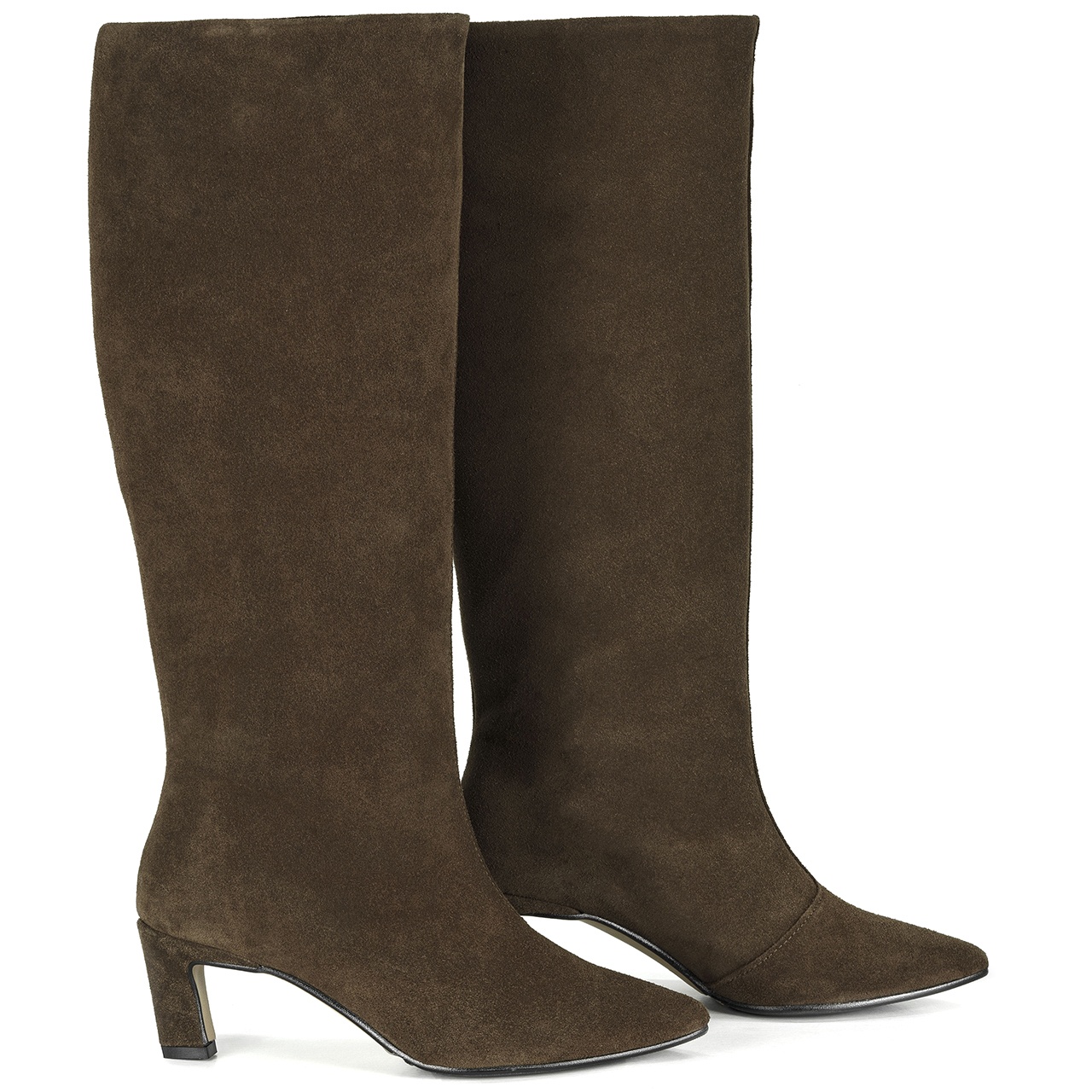 Czekoladowe welurowe kozaki na niskim obcasie 210K
