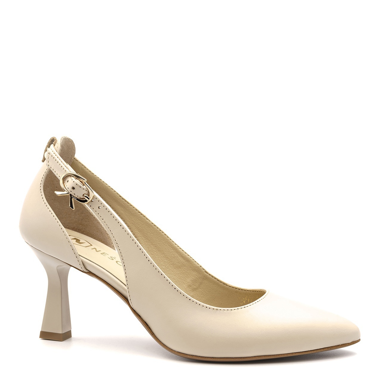 Beżowe skórzane czółenka z wycięciem Y264C