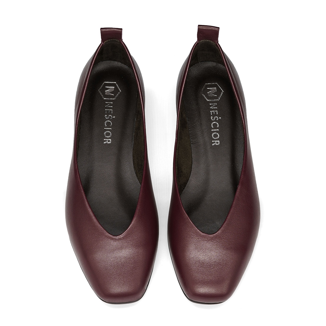 Bordowe skórzane klasyczne baleriny 229F