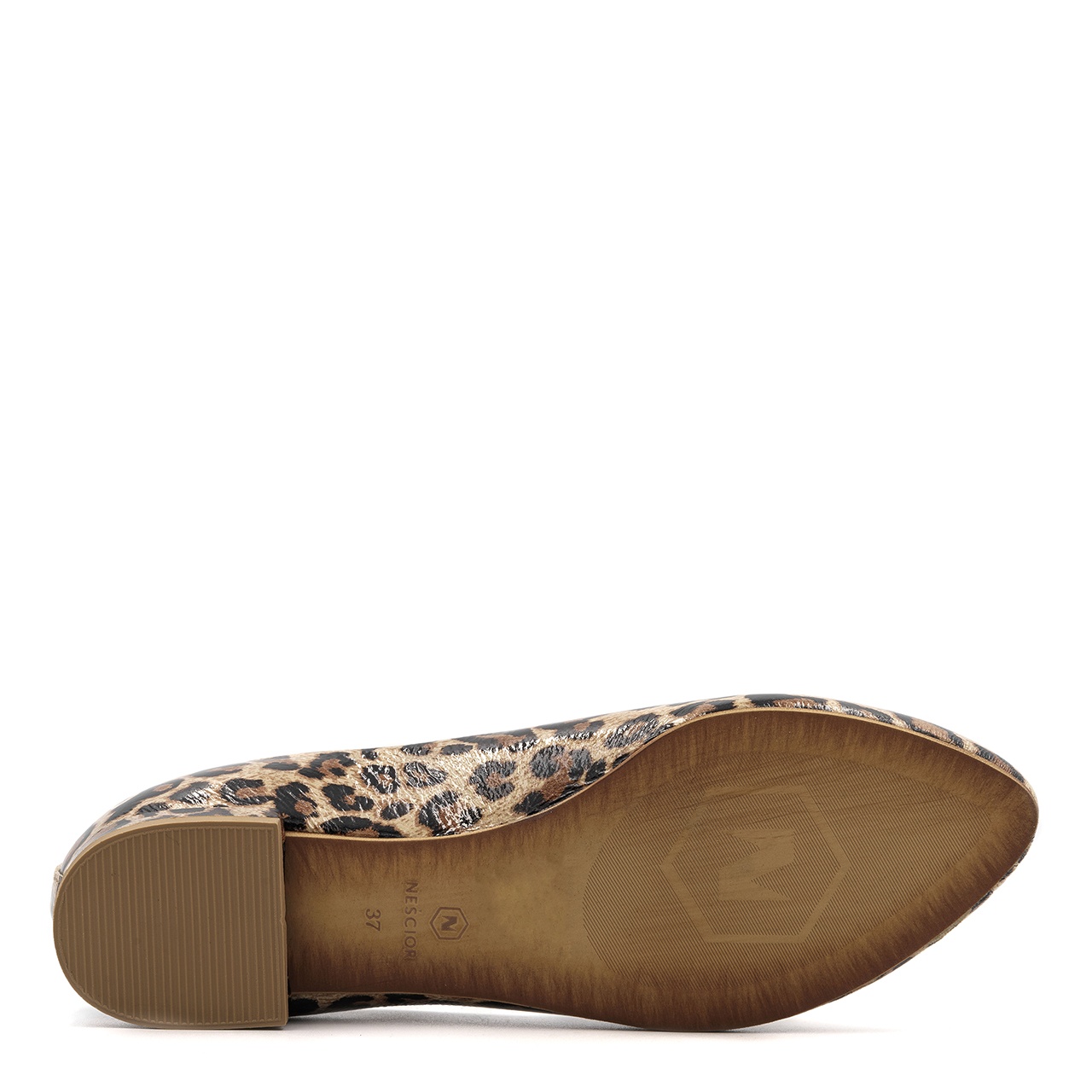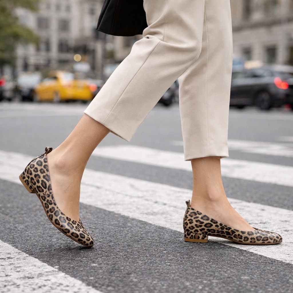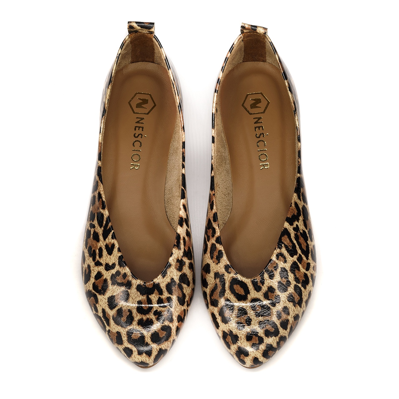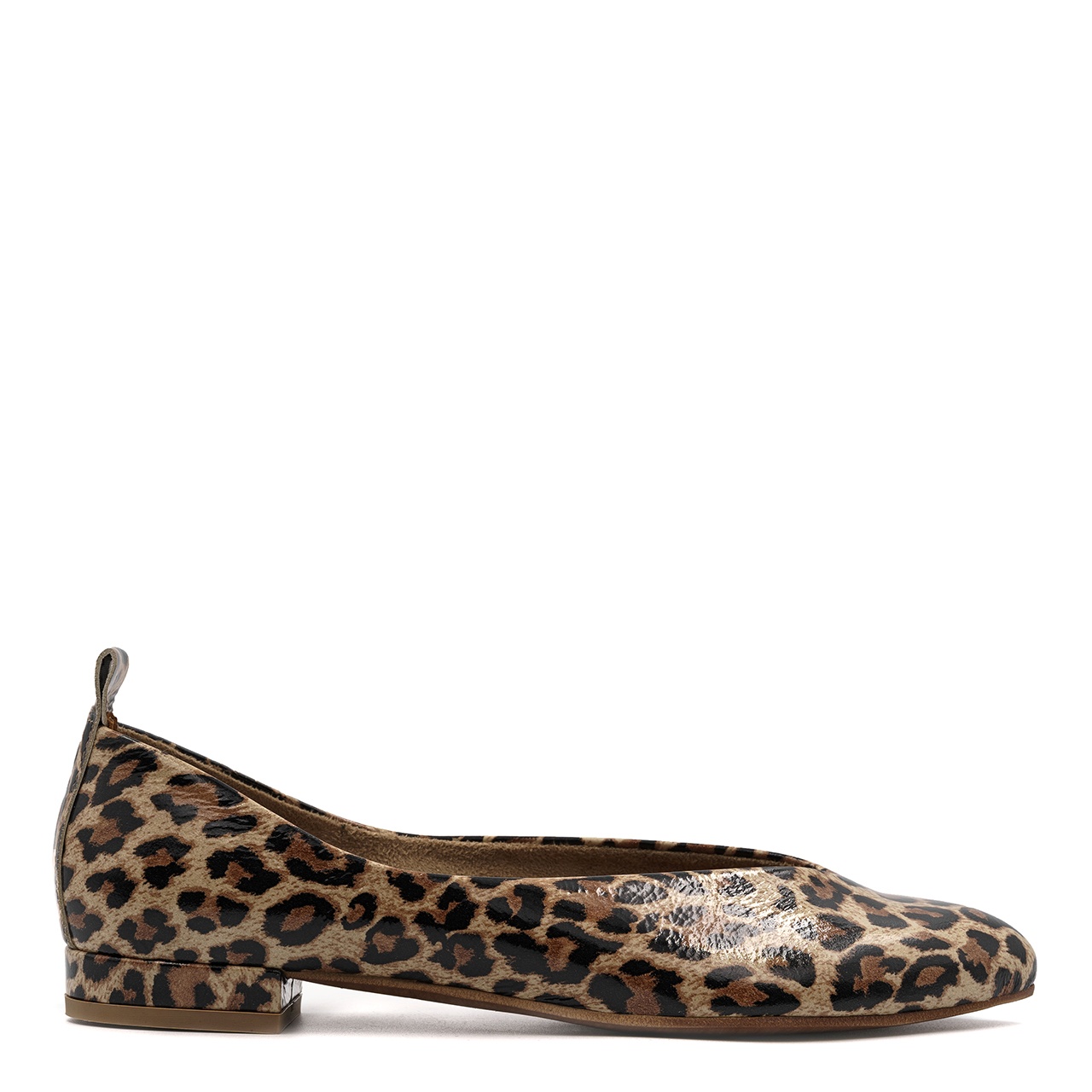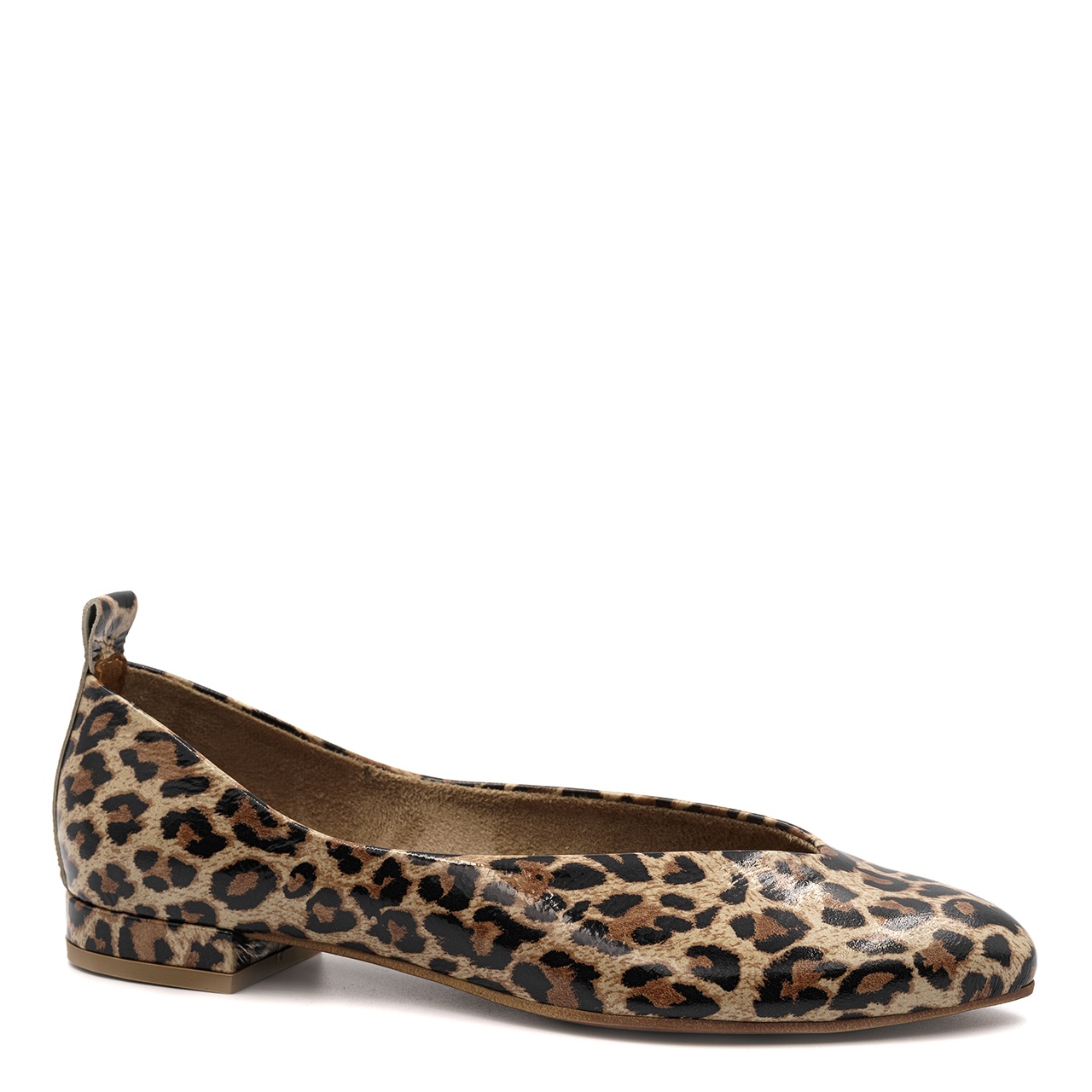 Panterkowe skórzane baleriny na obcasie 297F