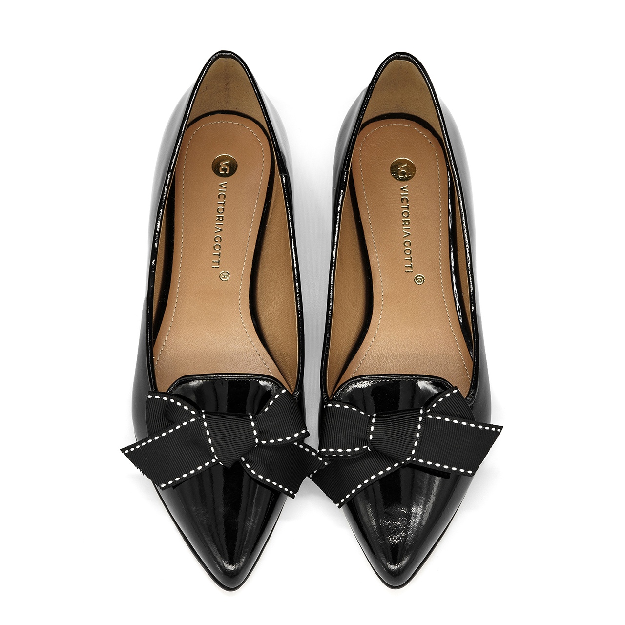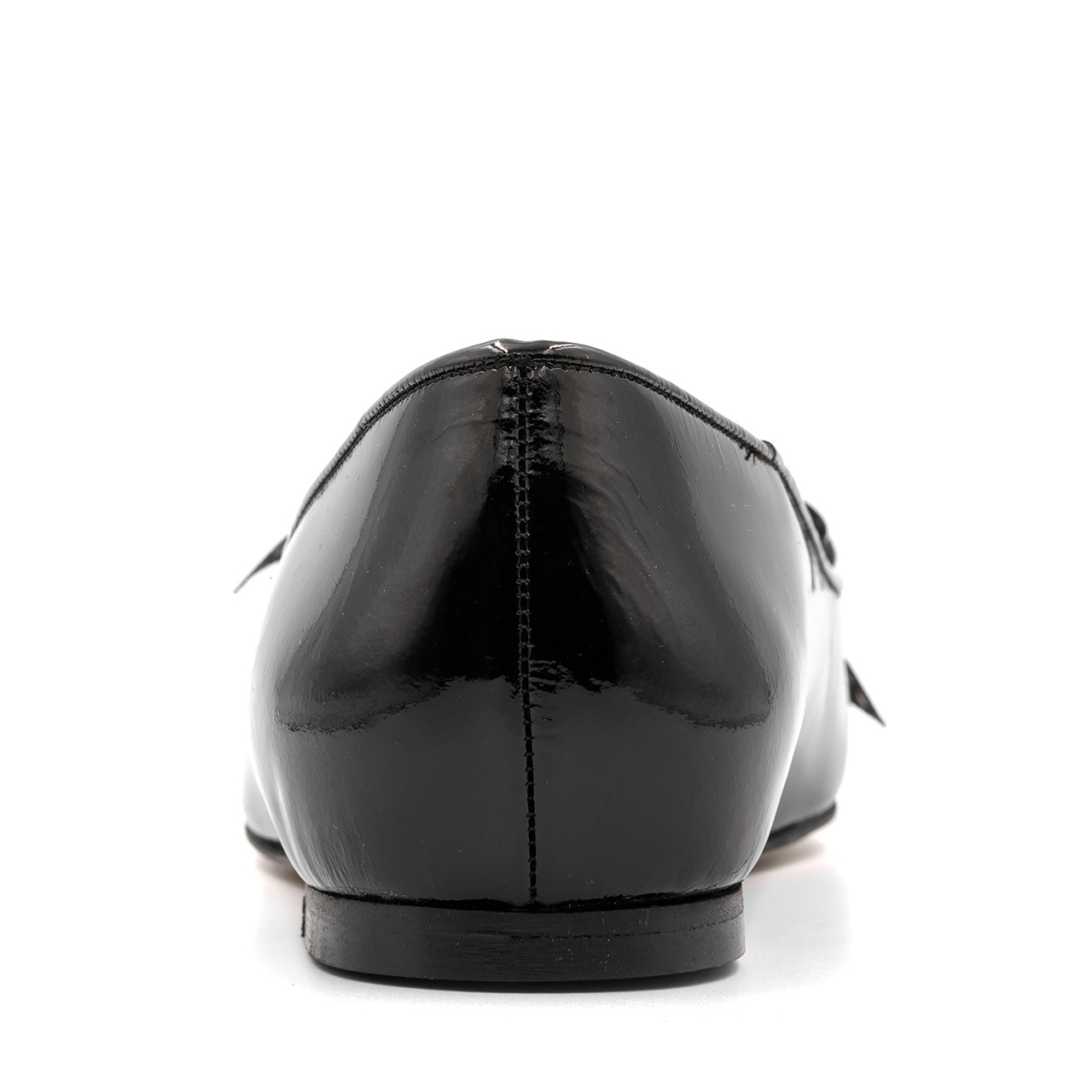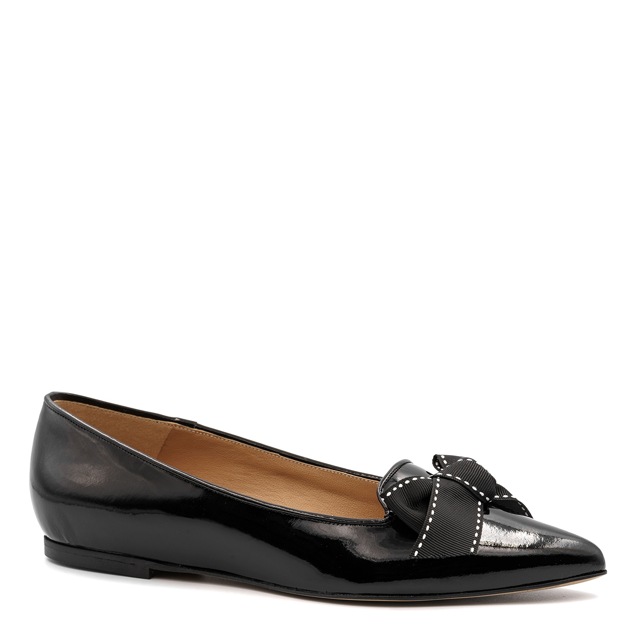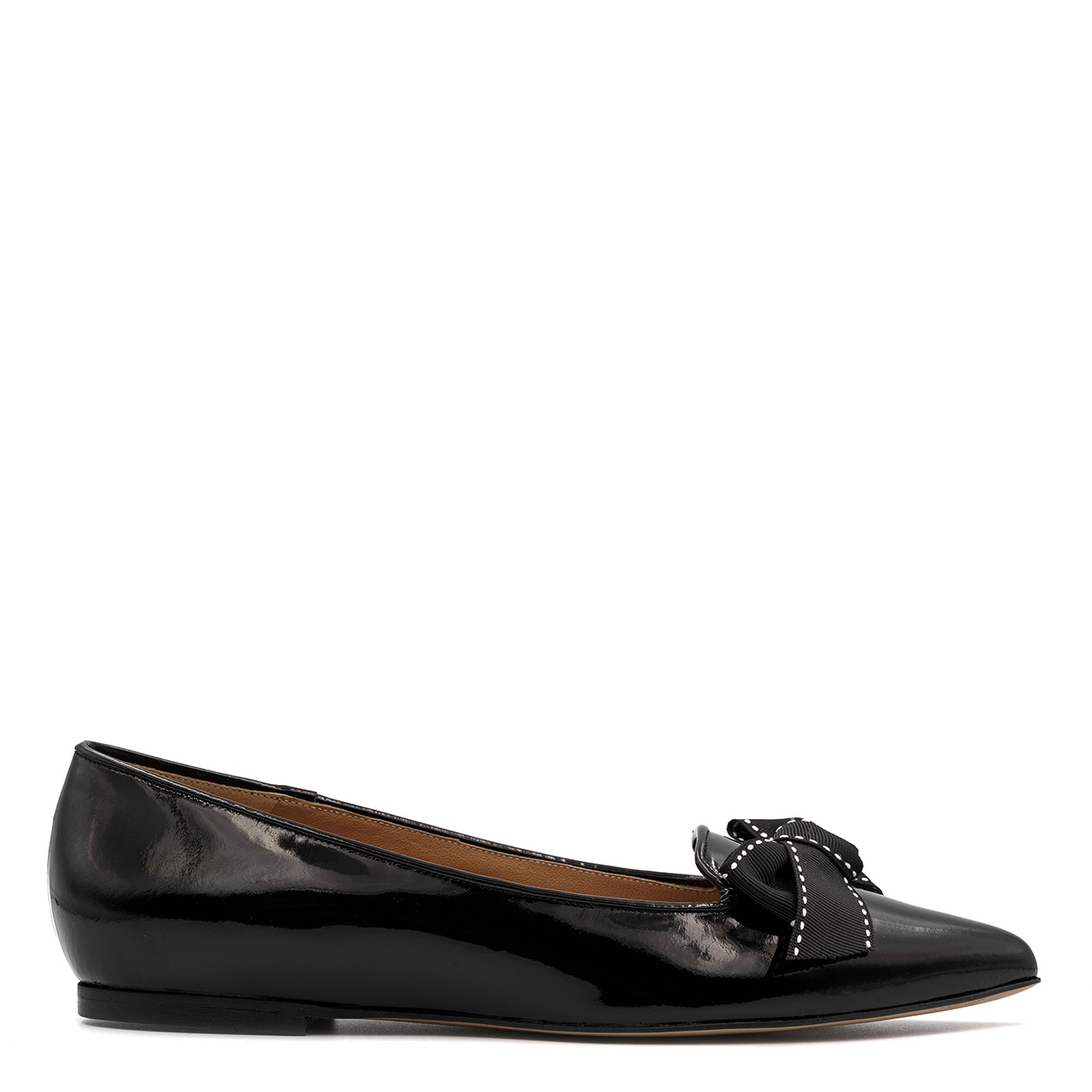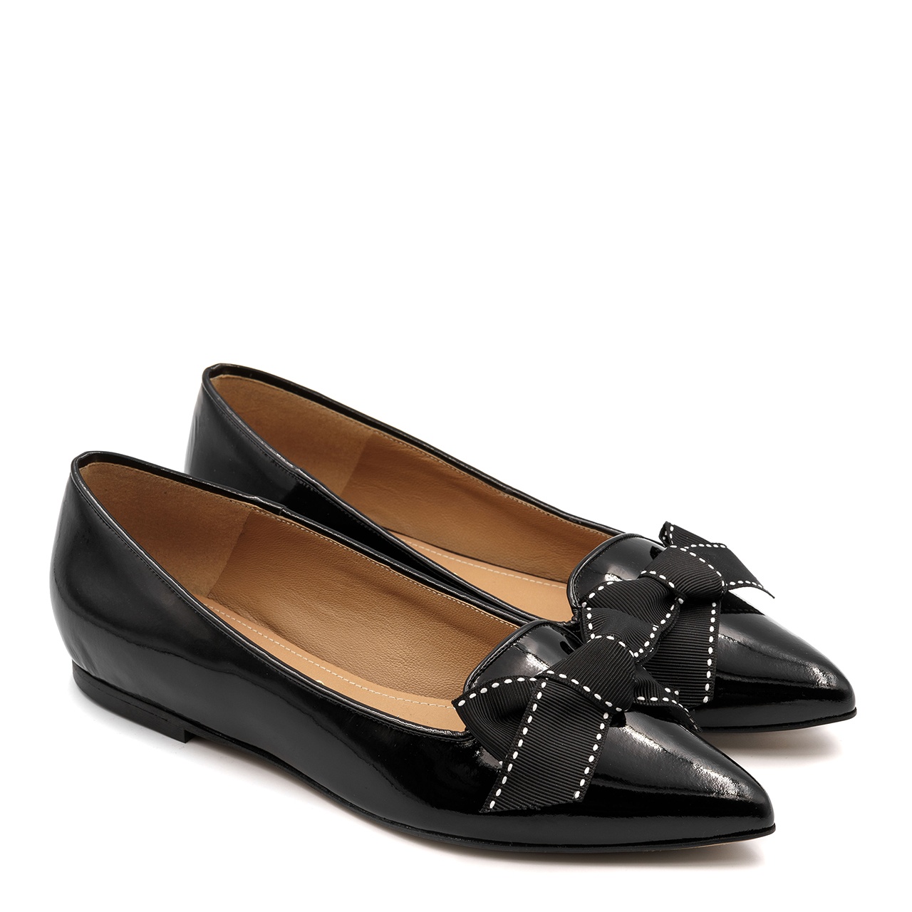 Czarne baleriny z noskiem w szpic. Obuwie wykonano z naturalnej skóry lakierowanej. Wkładka w balerinach jest wykonana ze skóry naturalnej. Wysokość obcasa wynosi 1 cm. Wymiary podawane na kartach produktów to wymiary orientacyjne i odnoszą się do rozmiaru 37.