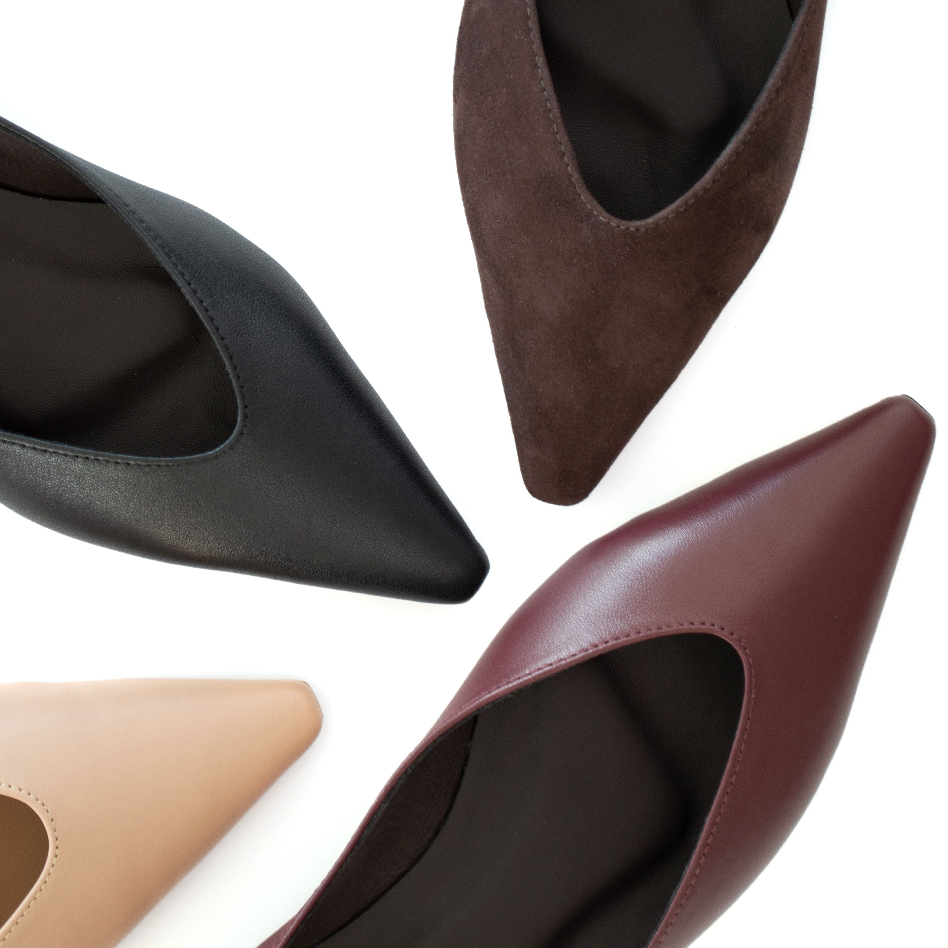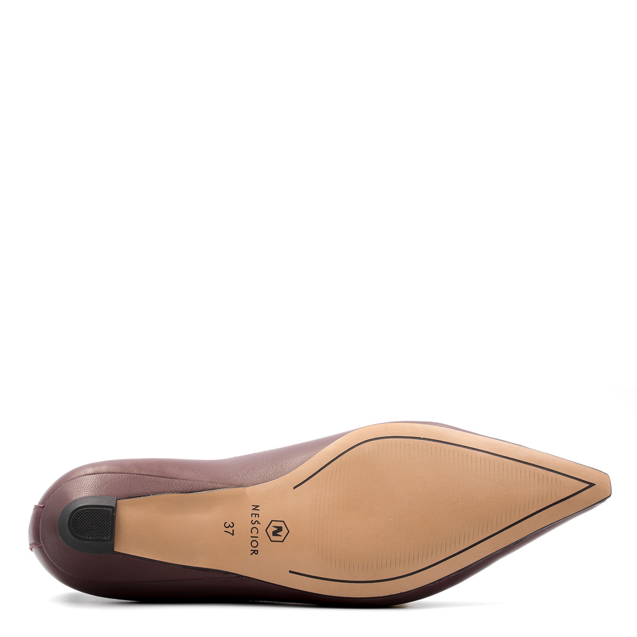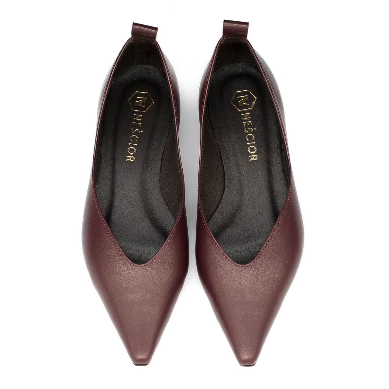 Bordowe skórzane baleriny w kolorze czerwonego wina z noskiem w szpic to połączenie estetyki i paryskiego szyku. Obuwie wykonano z miękkiej skóry licowej. Cholewka butów estetycznie wycięta w migdał. Obcas w balerinach wynosi około 2,5 cm co gwarantuje wygodę noszenia przez cały dzień. Wkładka w butach jest skórzana. Tęgość butów standardowa. Baleriny będą idealnym dodatkiem do każdej garderoby. Wymiary podawane na kartach produktów to wymiary orientacyjne i odnoszą się do rozmiaru 37.