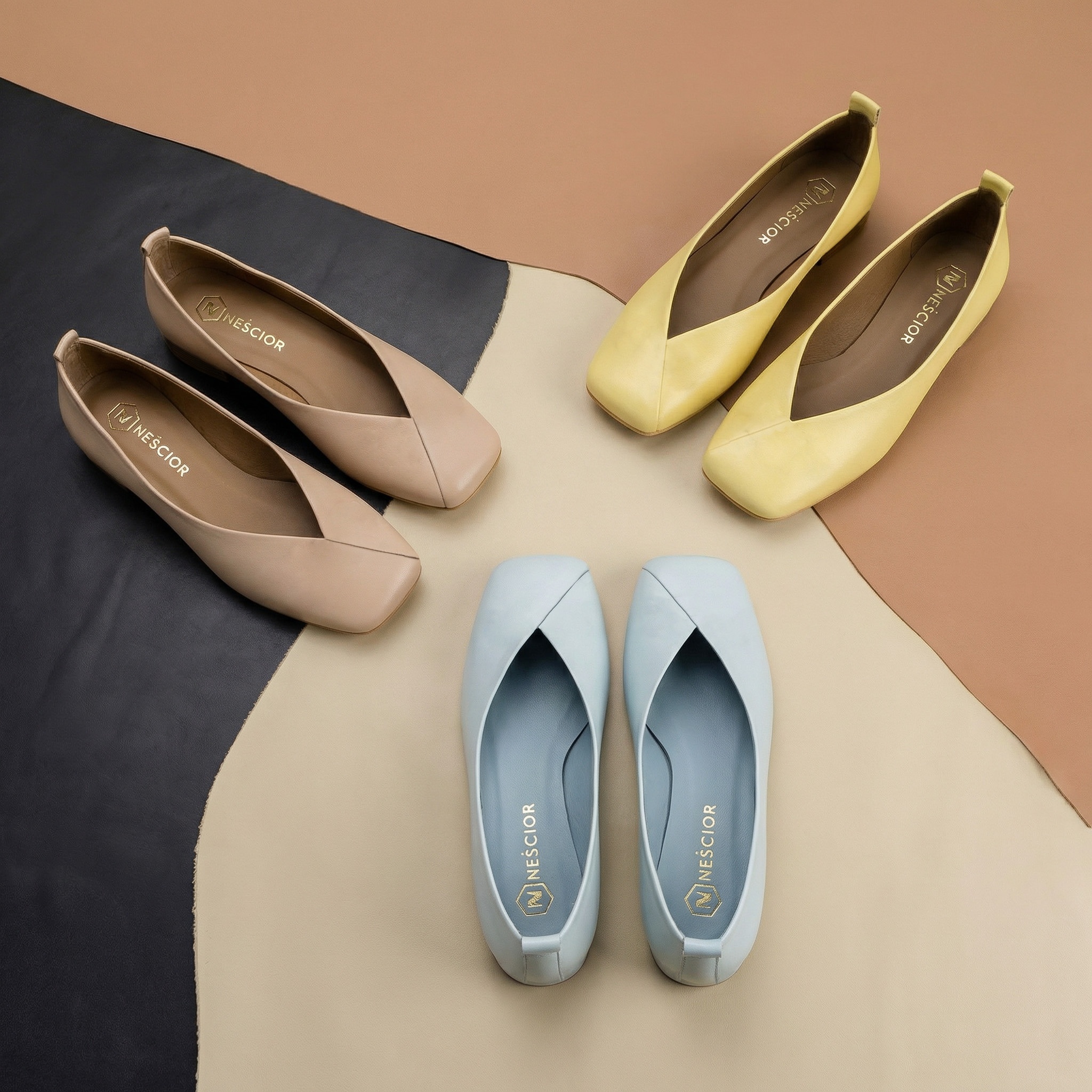 Beżowe baleriny z kwadratowym noskiem 80B
