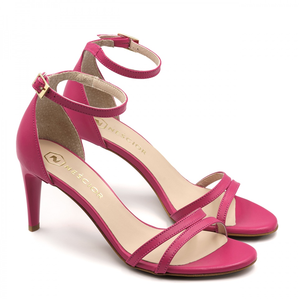 Fuksja skórzane sandały na szpilce 209P
