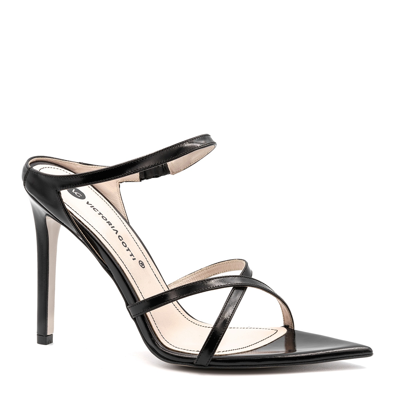 Czarne skórzane klapki na 11 cm szpilce wykonano z naturalnej skóry. Eleganckie klapki wyróżniają się dwoma krzyżującymi się paskami z przodu buta. Wkładki w butach są skórzane. Wymiary podawane na kartach produktów to wymiary orientacyjne i odnoszą się do rozmiaru 37