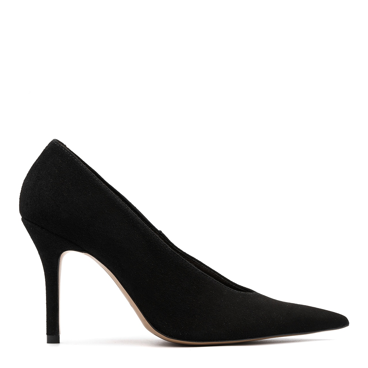 Czarne zamszowe szpilki z długim czubem 142B