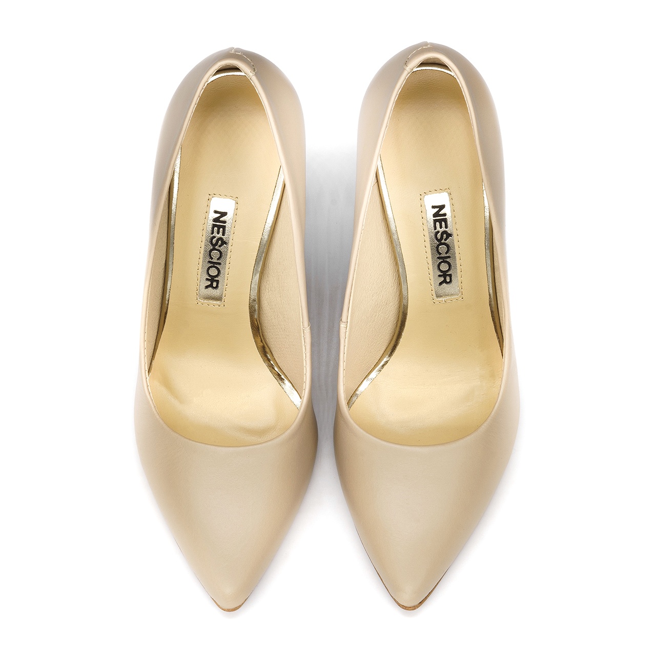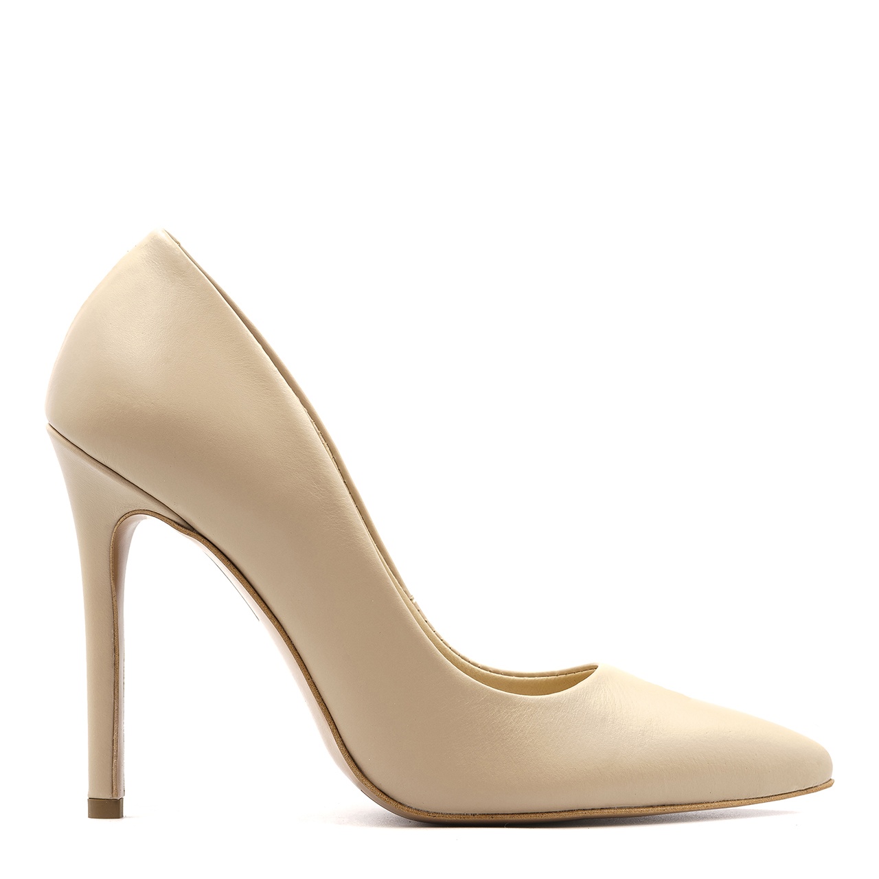 Beżowe skórzane szpilki na 11 cm obcasie. Obuwie wykonane jest z naturalnej skóry licowej. Nosek szpilek w szpic. Wkładka w butach jest skórzana. Wymiary podawane na kartach produktów to wymiary orientacyjne i odnoszą się do rozmiaru 37.
