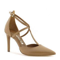 Karmelowe, zgrabne szpilki na stabilnym 9 cm obcasie z zabudowanymi palcami i piętą. Buty wykonano ze skóry naturalnej licowej. Cieniutkie paseczki zapinane w kostce subtelnie krzyżują się na stopie. Nosek w szpic podkreśla ich kobiecy charakter. Wkładka w butach jest skórzana. Wymiary podawane na kartach produktów to wymiary orientacyjne i odnoszą się do rozmiaru 37.