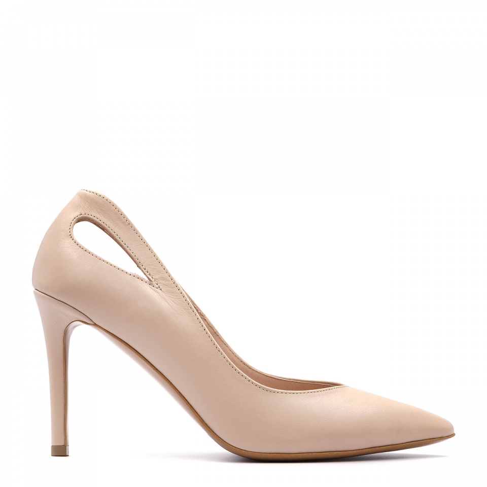 Pudrowo-różowe eleganckie szpilki z wycięciem łezką na pięcie to obuwie na wyjątkową uroczystość. Buty wykonano ze skóry naturalnej licowej. Obcas szpilek wynosi 9 cm. Nosek butów w szpic. Wkładka w szpilkach jest skórzana. Wymiary podawane na kartach produktów to wymiary orientacyjne i odnoszą się do rozmiaru 37.